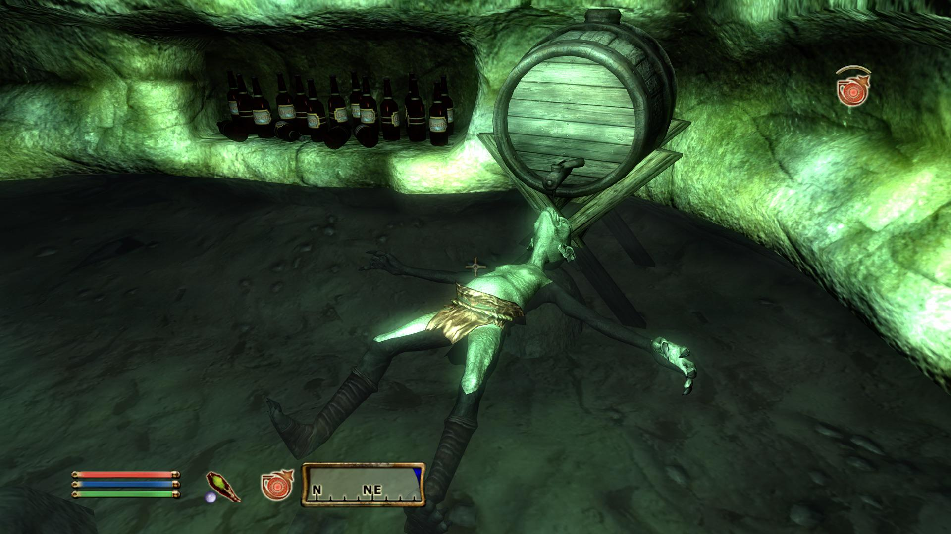 Тут резко зашел покупатель, так что Аррилл еле успел встать в упор к прилавку, чтобы было видно только его верхнюю одетую часть. Посетителем был сильно зачуханого вида молодой норд, явно жопонюх с имперской галеры. Невнятно бормоча предложил несколько столовых приборов и вилок, которыми явно чистили парашу, и пару бутылок Флина. За все это купил заклинание школы разрушения "Большой Жопный Взрыв", и ушел.