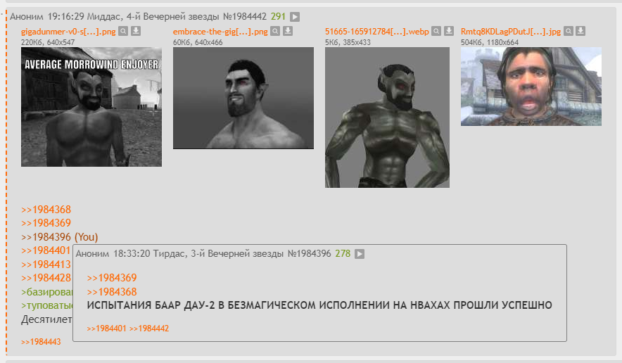 >>1997747 Как же отдыхать не восславив Зенитара? Во имя Девяти, ты что, один из тех еретиков с Морровинда поклоняющихся троице старых прокачанных данмеров вместо поклонения настоящим богам?