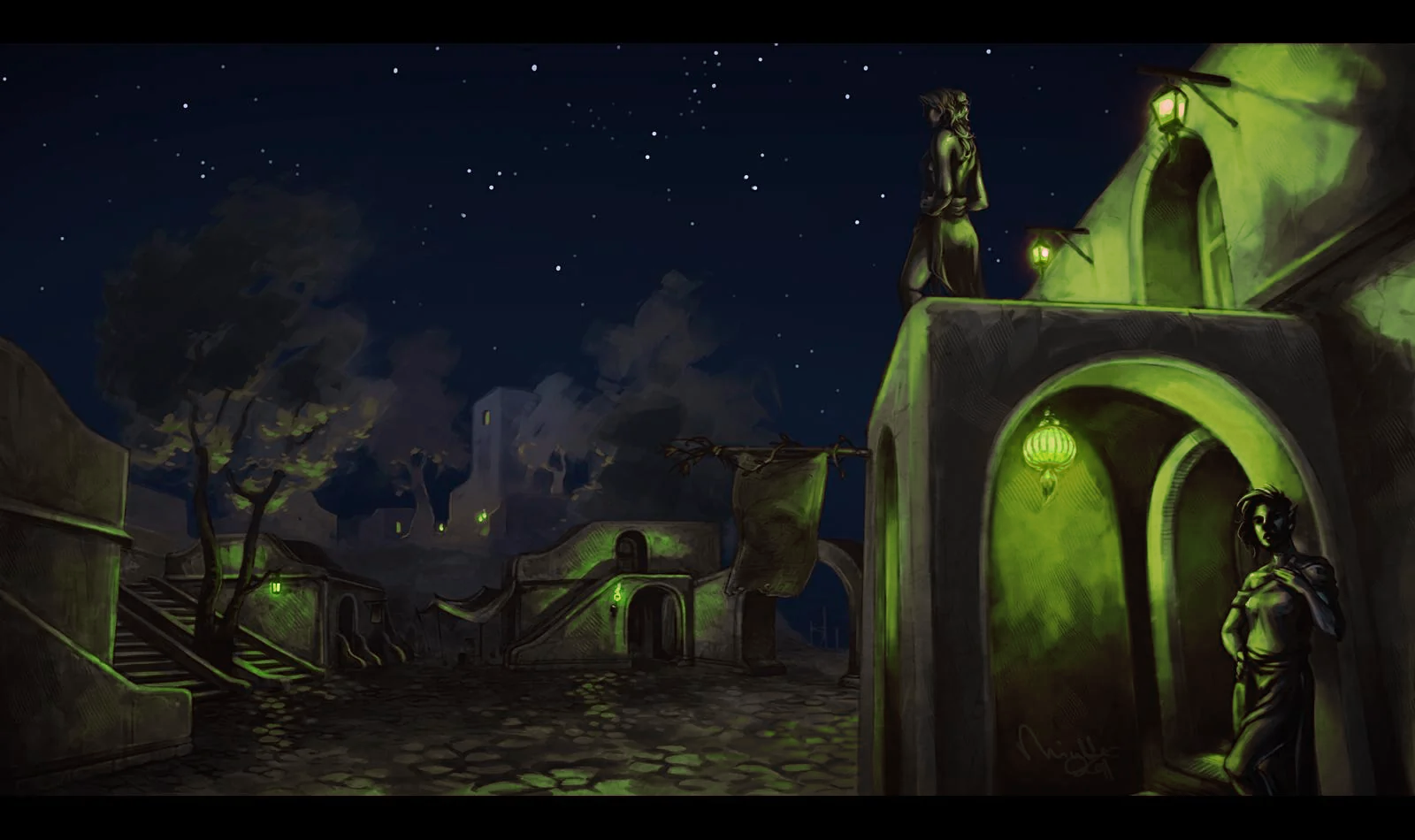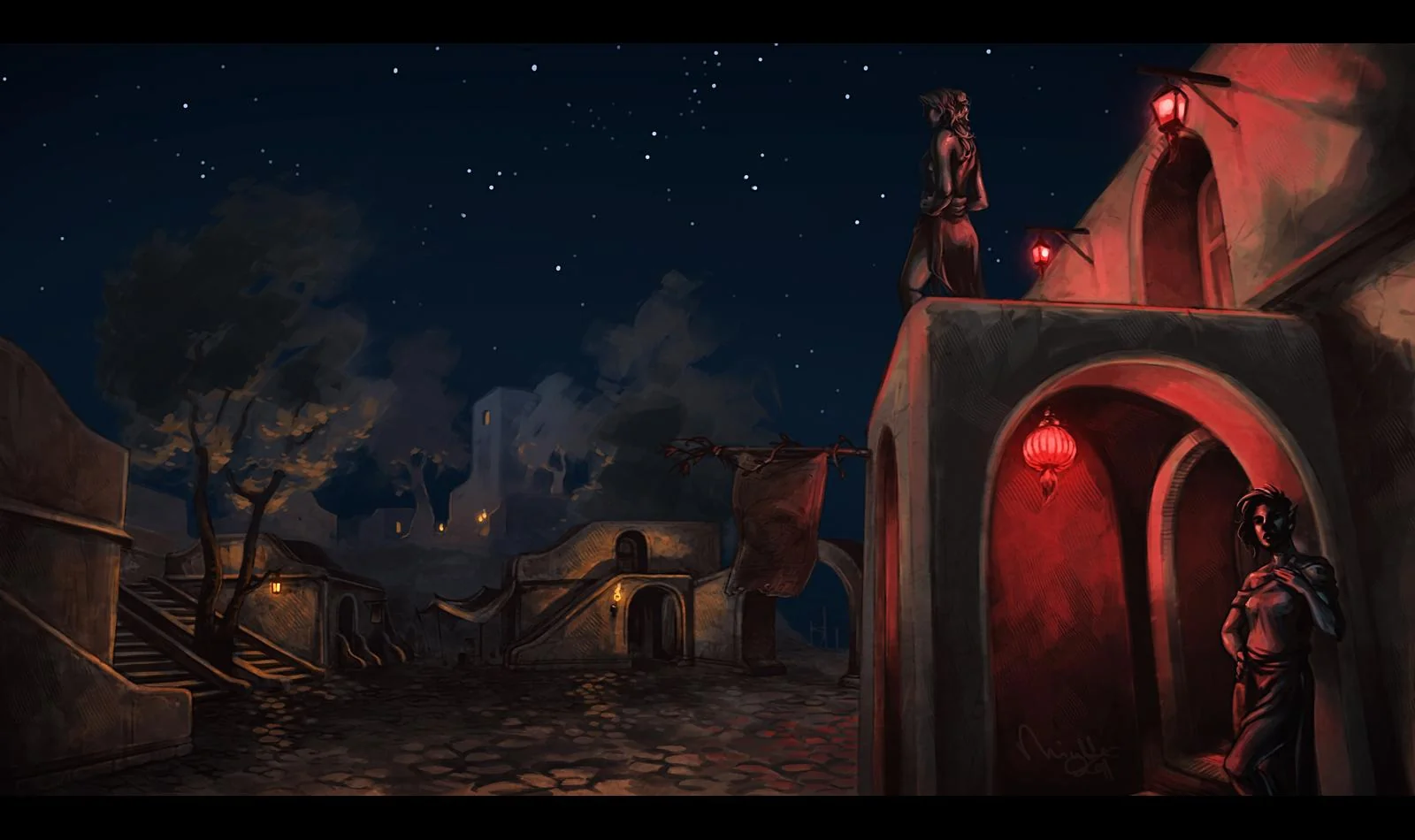 Данмер подозревает жену-данмерку в измене, но не уверен. «Вернусь домой неожиданно, — думает он, — Я должен всё прояснить». Приходит домой,данмерка одна. Всё же ему неспокойно, и он решает повести разговор намёками: — Знаешь, я слышал интересную историю, в которой у женщины появился любовник, но муж не мог её уличить. Жена ответила: — Я знаю другую интересную историю, в которой жену до измены могли бы довести разве что придирки и подозрительность её мужа, но она была достаточно терпелива и скромна. — Ах, по–твоему это история о том, как муж изводит невинную женщину, нападая на неё на пустом месте? — Нет, это история, в которой женщина своенравна, и она может провоцировать мужа. Но таков её характер, за который когда–то он её полюбил. Он до сих пор в минуту нежности говорит ей, что она та же юная стрекоза. И всё же, она зрелая женщина, и она верна своему выбору. — Что ж, кажется, я знаю эту историю. В ней муж бывает несправедлив к жене, но до сих пор очень любит её. Он сожалеет, если причиняет ей боль. Муж и жена обнимаются. Голос с балкона: — Вот я знаю действительно интересную историю, в которой мужчина пошёл купаться, но только успел раздеться, как его схватила стая альбатросов и лишь благодаря везению понесла над городом, а не над водой. От страха он не мог кричать и едва нашёл в себе мужество вырваться! Он упал на балкон уютного дома, в котором верная жена и великодушный муж как раз соединились в порыве глубокой и выдержанной годами нежности. К сожалению, он замёрз, но он точно не желал бы, чтобы очарование и мир этого дома нарушило причудливое недоразумение.