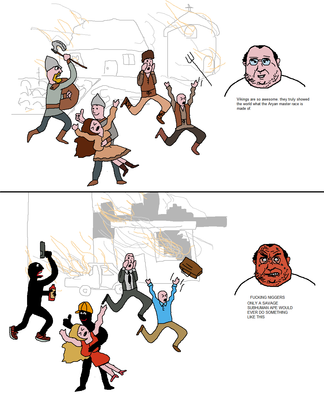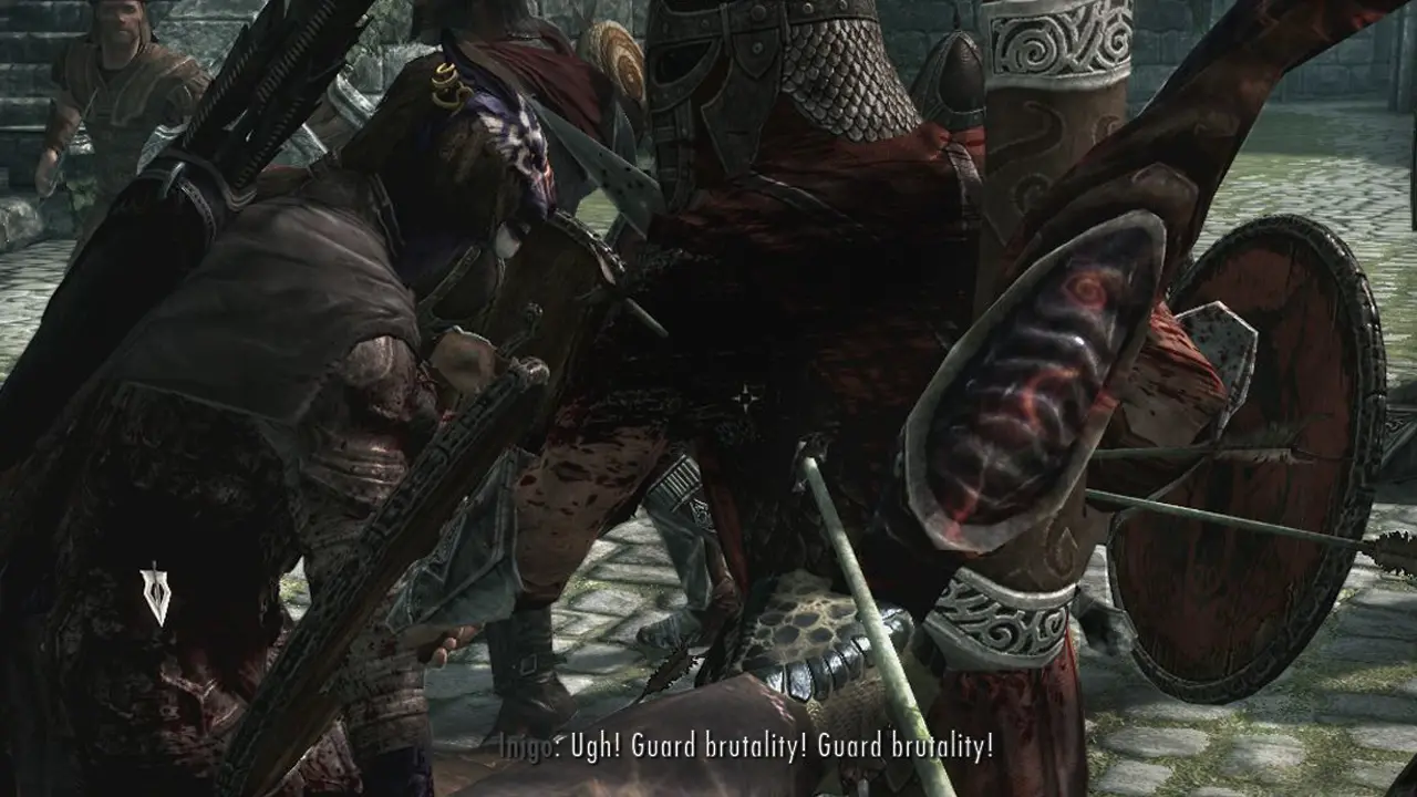 Убегает изгойка по полю, за ней бежит нордский солдат с топором и бормочет: —Убить или выебать, убить или выебать? Добегают до края поля, и тут им на встречу отряд изгоев в полном обмундировании. Окружает норда, тот в ступоре пару секунд смотрит на них и как заорёт: —ВЫЕБАТЬ!