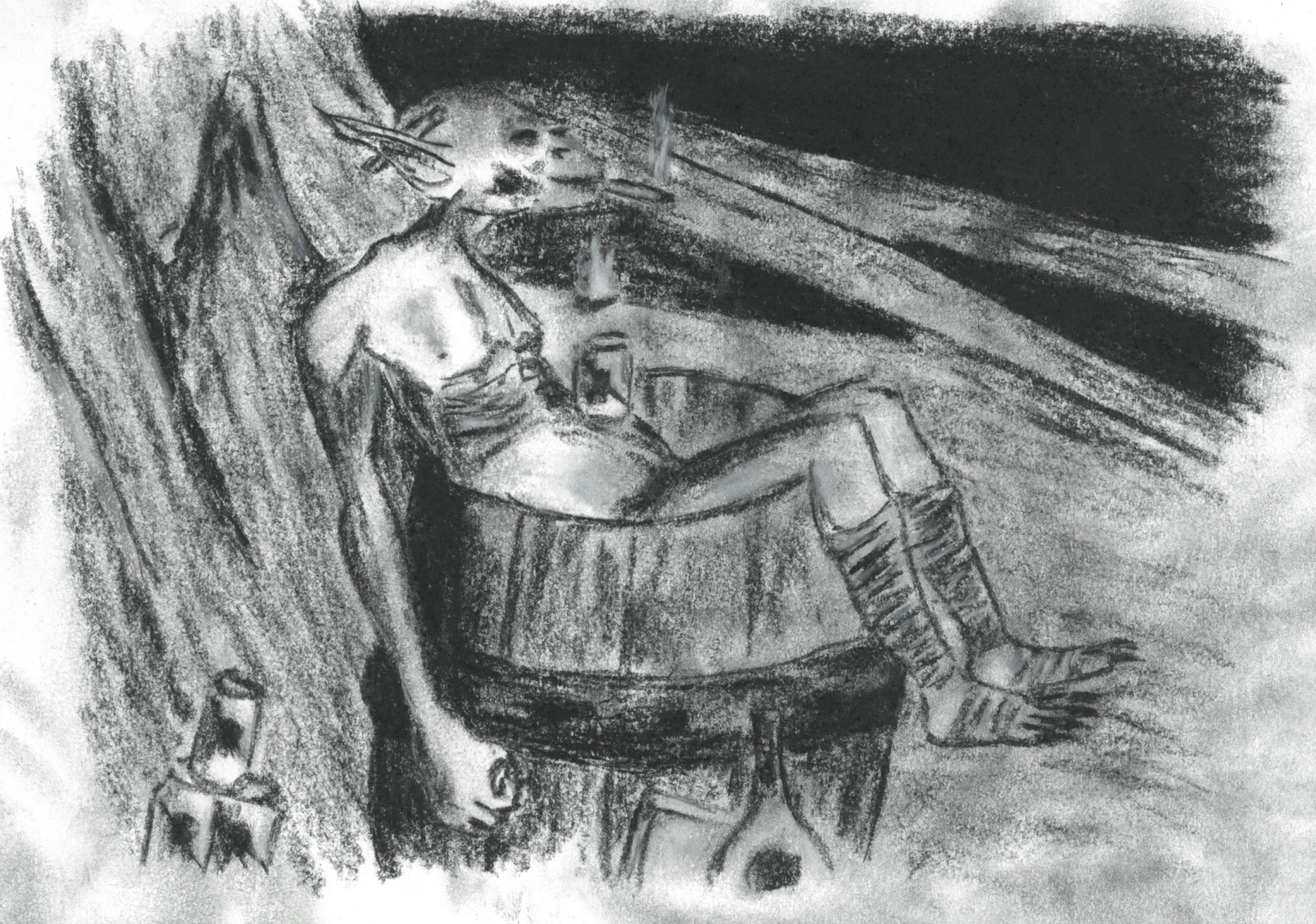 Наутро Йопку нашли во дворе. Он сидел, прижавшись спиной к трубе печки, с дико выпученными глазами. В руках он сжимал листок бумаги, исписанный теми же словами, что и в игре. А в избе, на столе перед монитором, лежал мокрый свиток.