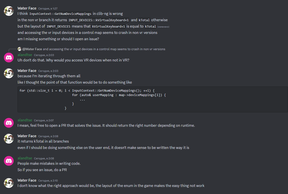 - приходит новый автор, говорит "вот тут у тебя ошибка" - Алан отвечает: "мне похуй, фикси сам и пиши мне ПР" - автор с лицом лягушки отвечает "окей", Алан ставит эмодзи "спасибо, братан" - а я на 146% уверен, что никто ничего не напишет, потому что это новый автор блять, ну как с него такие вещи спрашивать, ну ёбаны рот, считай как посадить джуниора за бэк или типа того