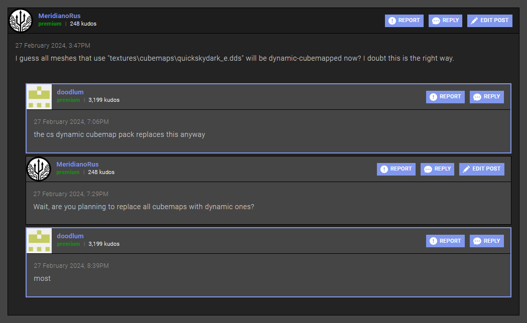 >>1950108 Вроде такого да. Кажется, он там не один был на нексусе. >>1950112 Дык вроде был туториал по кубомапам давно. Ну да ладно, наверняка с магией дудла модеры заиграют красами и перестанут тупо пихать кубомапы везде где можно,