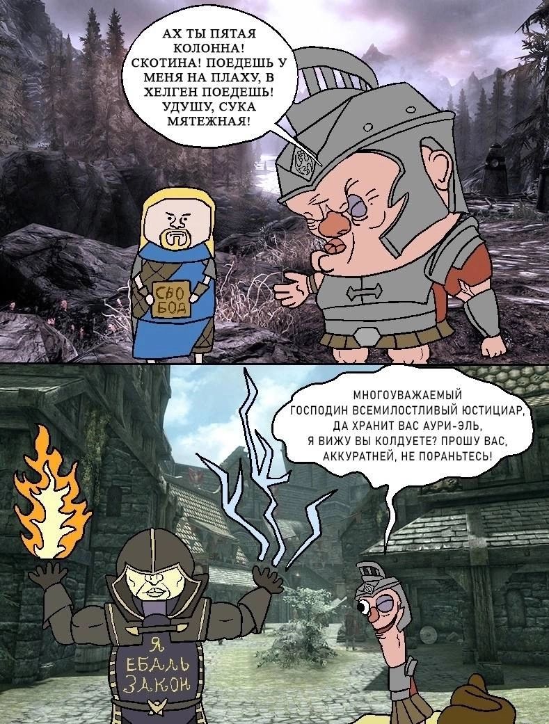 (хотя на этапе когда ты выдаешь за правила дуэлей обычные кабацкие драки пьянчуг, то обсуждение явно можно закрывать. Хотя это скайрим, может у них и так государственные вопросы решаются лол)