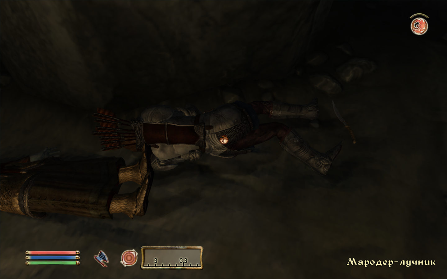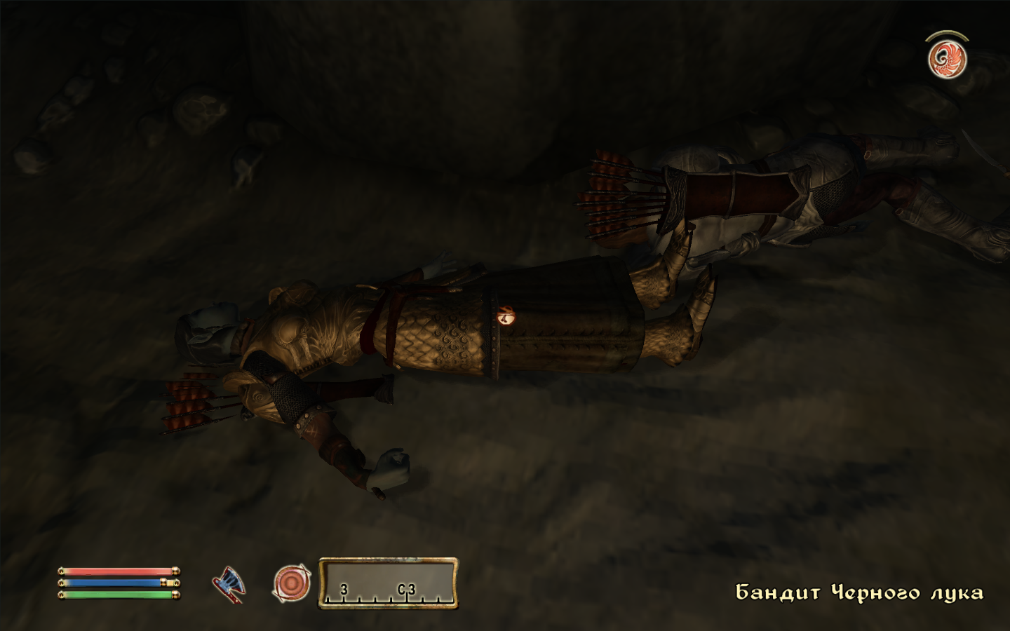 Прикола ради решил пособирать луки, те что можно сдавать по 100 золота графу, после квеста орк мазога. Захожу в пещеру, а там идет замес марадеров против челов с банды черного лука.