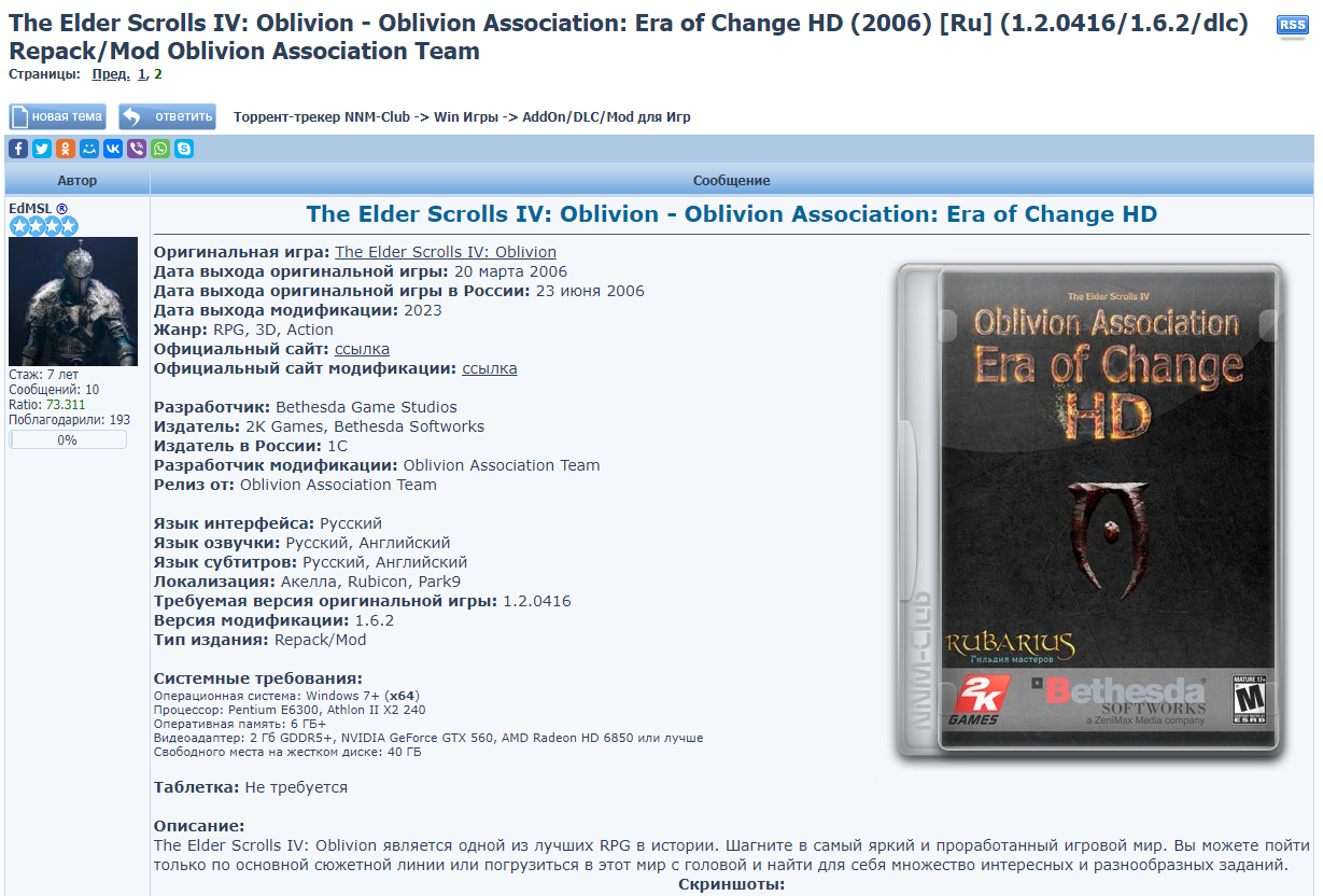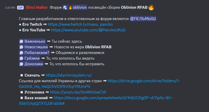 Кстати, тут так часто вспоминают гайд PushTheWinButton, но сорцы его гайда на моды английские. А в нынешнее время вообще что-то локализации уже много-много лет инактив, кроме пожалуй морровинда. Поэтому подскажу - большая часть переведенных модов из гайда есть в паке Oblivion Tension. Там же и NAO и множество других современных переведенных плагинов, которых нигде локализованных нет. Как сборка она слабая, там вообще никакой графики, но как источник готовых переводенных плагинов для Through the Valleys - ценная.