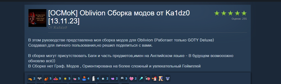 Как же хочется сделать свою сборочку... Но так лень пердолиться с модами... Поставил бы ООО и Oblivion XP. На погоду чонить... Так лень...