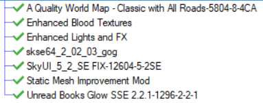 Плюсы SSE: + Быстрая загрузка даже в "тяжёлых" местах с множеством объектов. + Отсутствие микрофризов, более плавный игровой процесс. + Функции движка "из коробки" - Precipitation Occlusion, Ambient Occlusion, Image-Based Lighting и пр. + Несколько упрощённая установка (нет настройки ENBoost и некоторых других твиков). + Собственные мод-эксклюзивы, в том числе и новые механики.