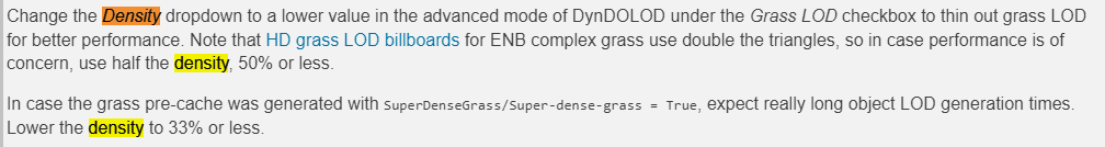 >>1973250 Там в гайде density 100 для травы на скрине, для енб лучше от 30 до 50 ставить. Это сильно жрало мои фпс, например.