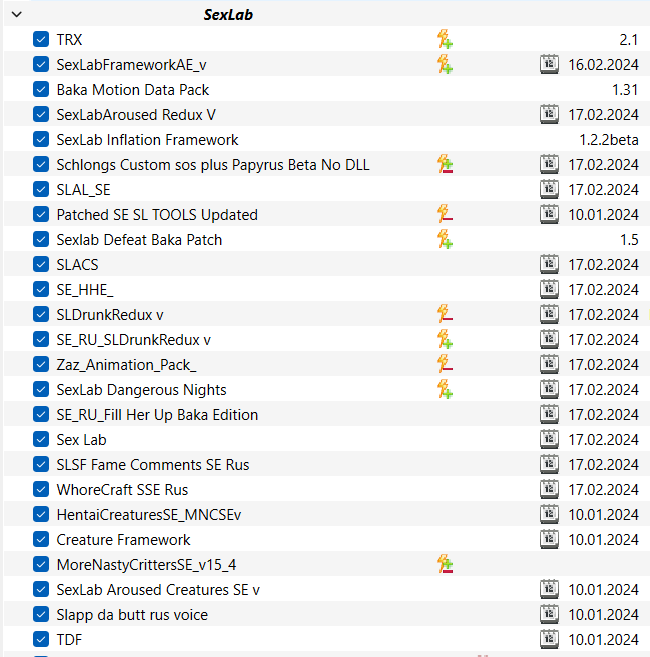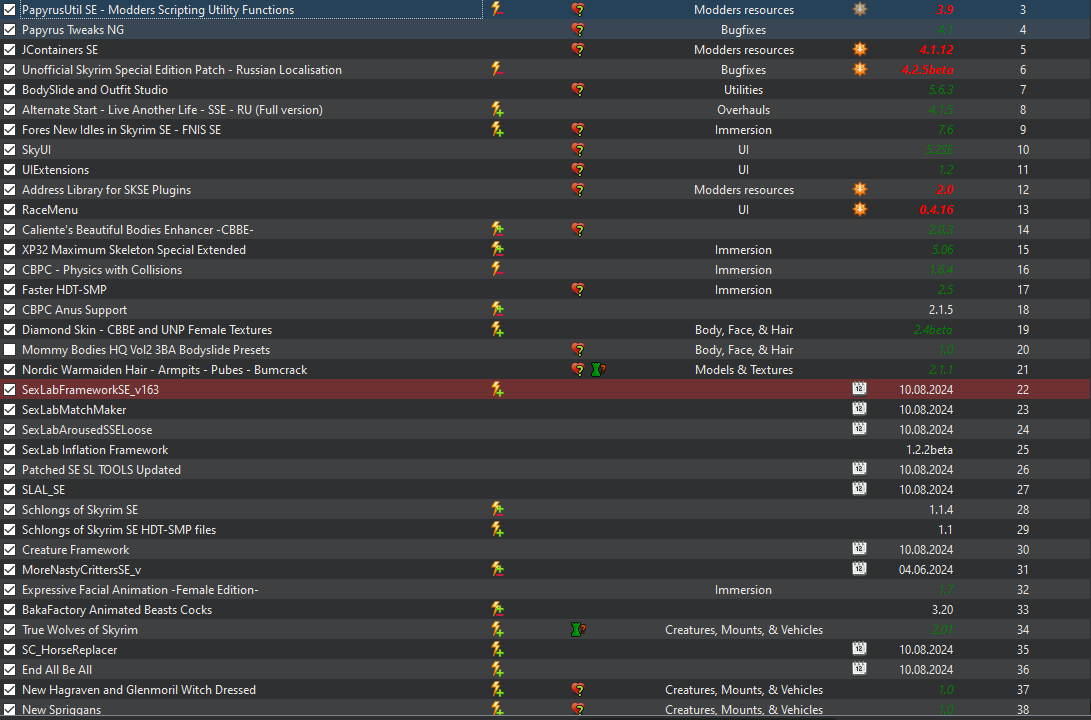 >>1973920 скайрим 1.5.97, секслаб 1.63, стоит последний мфгфикс, он перезаписывается последним мфгфиксом нг.