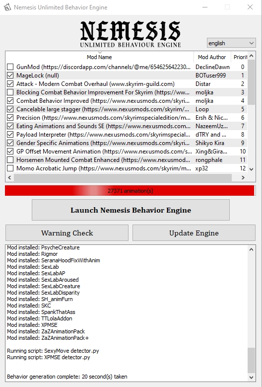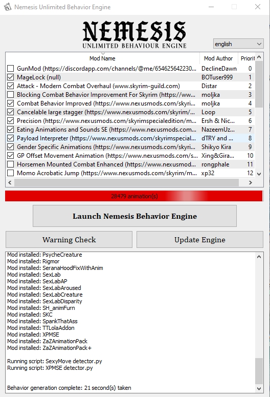 >>1970828 >А дефолтные секслабовские паки анимаций на него не встанут? Мне кажется их в любом случае будет больше чем для p+ Там все паки какие есть уже сконвертили + программа делает это автоматически. Суть p+ в том, что он не на папирусе и он в 100 раз быстрее работает, без пердежа, дерганий и всяких других раздражающих факторов. Если боишься, то накати старый секслаб, но отсюда https://www.loverslab.com/files/file/10316-osmelmc-mod-tweaks/