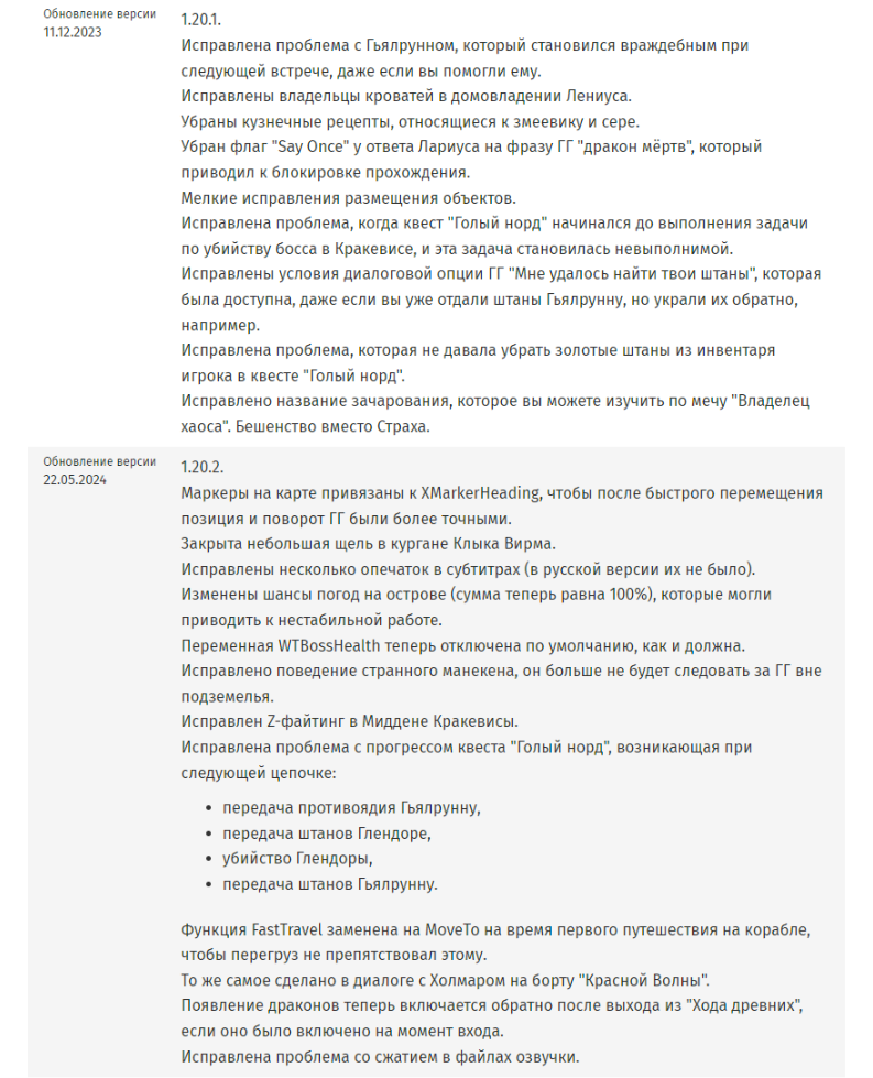 >>1975285 Согласен, плюсы и минусы уже давно одни и те же, и все их знают. Вопрос, чем их заменить? Есть пара идей: - указать самые популярные версии игры (1.5.97, 1.6.640 и 1.6.1170) - фразу про "моды, связанные с SKSE" оставить как есть - написать что-нибудь про даунгрейд? И обозвать это всё "Особенности".