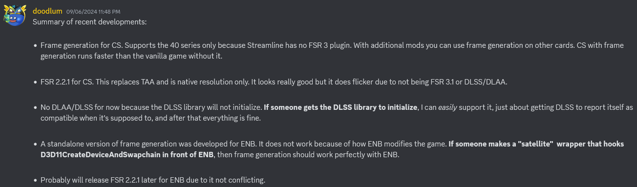 >>1973615 Все эти фичи выглядят так, словно они ради фич и сделаны. По общему визуалу, ENB лучше выглядит чем CS. (для меня) CS все еще сосет у ENB. В том числе, в плане удобства (нахуя мне надо качать десяток модов, когда в ENB это просто 2 dll и пресет). Альтернатива, конечно, заебись всегда - но пока её нет. либо сейчас десятки анонов с CS завалят мой пост своими графонистыми скриншотами без решейда (потому что решейн и на ENB работает)