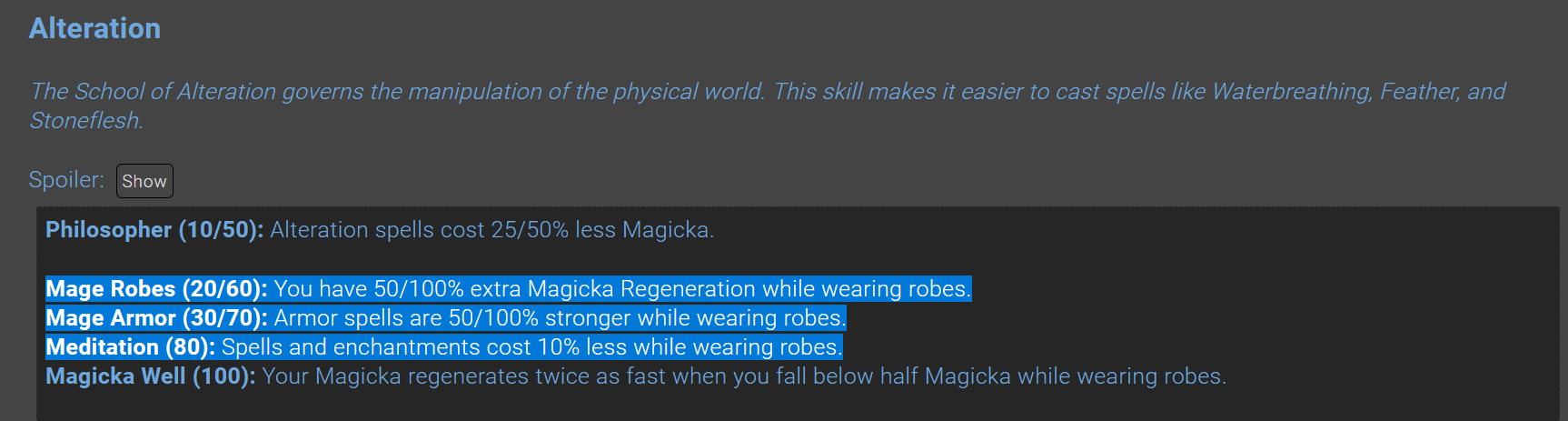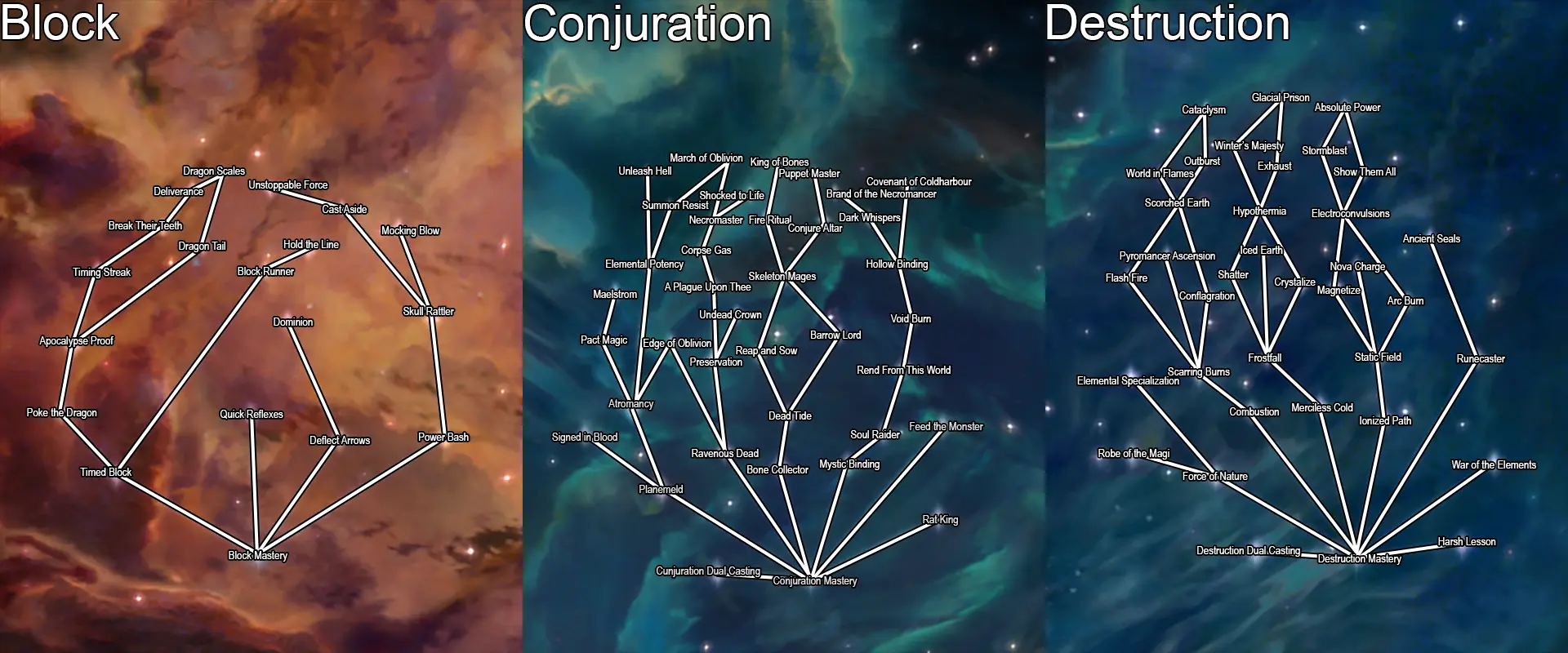 >>1975036 Ну в колдовстве там теперь 3 полноценные ветки, можно через скелетов со всякими бафами и дебафами или через группу атронахов, а можно через дебафы с призываемым оружием. А вот ветка разрушения очень сильно преобразилась с апокалипсисом, теперь это не просто струя холода или летящая сосулька, а абсолютно разная магия. Можно врага запульнуть в небо, можно всё заморозить, можно создавать стены или разрушать их, можно смотреть от лица врага, заключить его в шипастую клетку и еще десятки разных новых вещей.