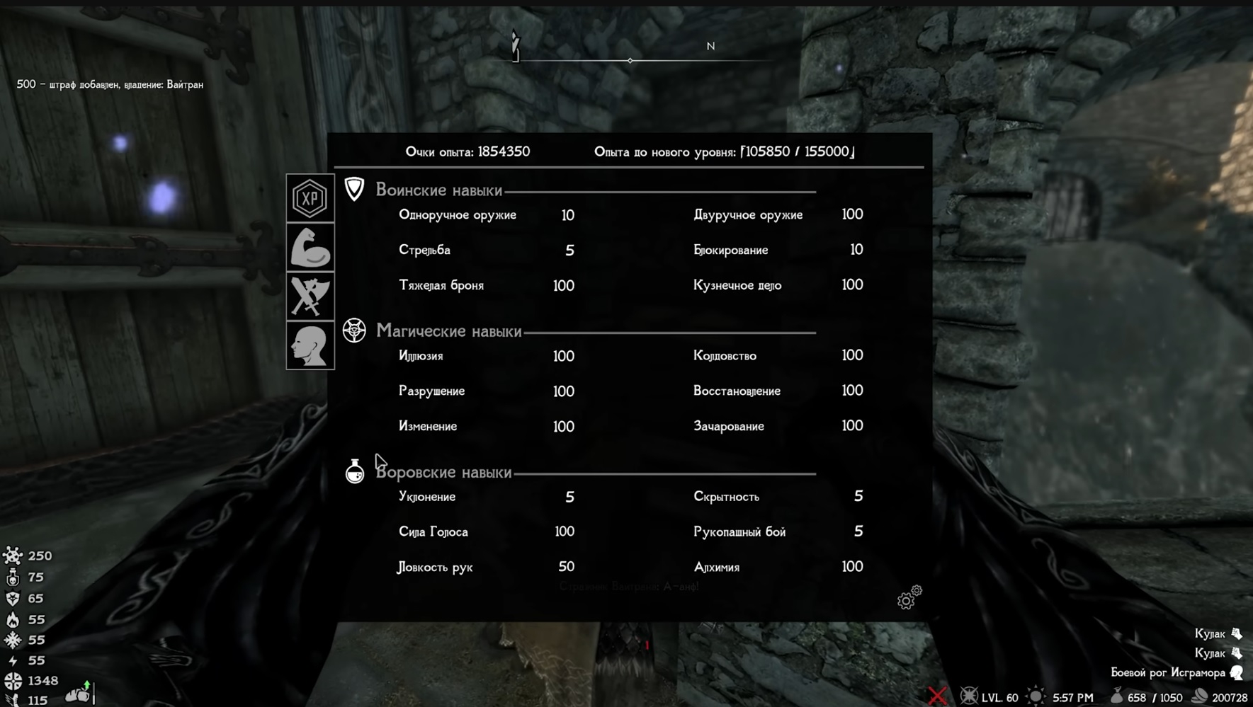 Рефлием На данный момент самая кринжовая сборка на скелете рфада. Понадёргали разных модов от разных авторов, сами нихуя не делали, из-за чего у них интерфейс сука весь разный. Вот у тебя 6 элементов интерфейса (полоски хп и резисты, компас, текст на объектах, текст врагов, текст полученного опыта - весь сука разный. Они все 6 будут блять разного стиля, разного размера и разного шрифта, я охуел просто. Уебищная система опыта, какого-то нпц надо призываться и через диалог покупать у него прокачку, перки, статы. И качает он всё, он эксперт всех навыков, лол. Можешь поклоняться двум богам сразу, а можешь и не богам - ты и паладин, и культист даэдра одновременно. Ну а сам вид местной прокачки на пике, комментировать даже не надо.