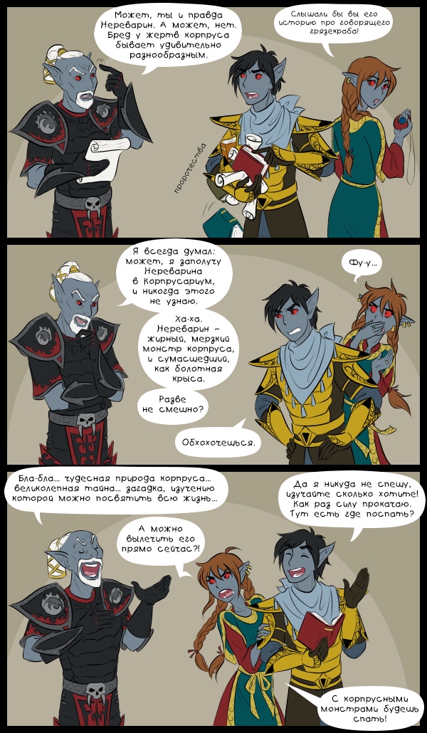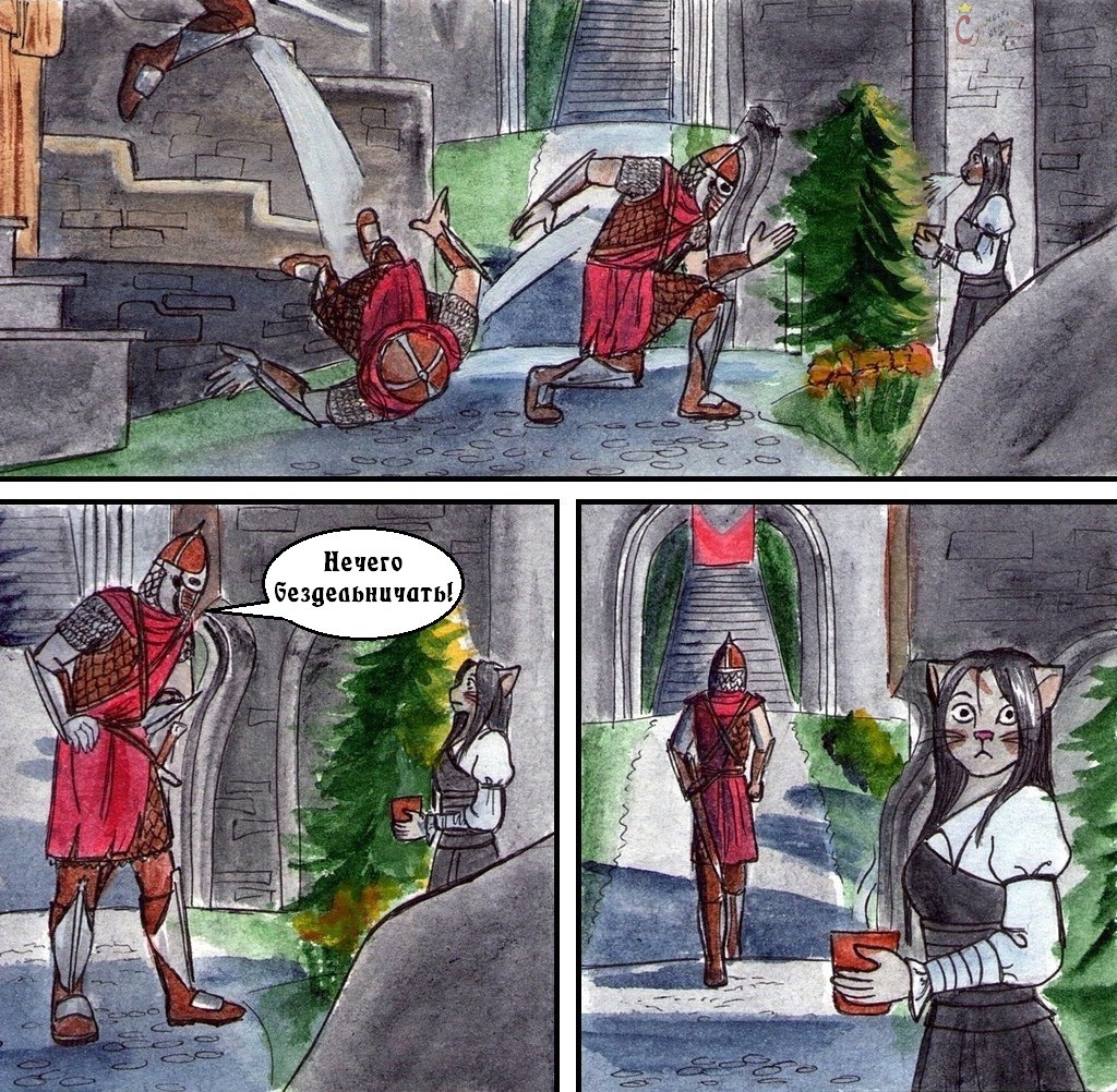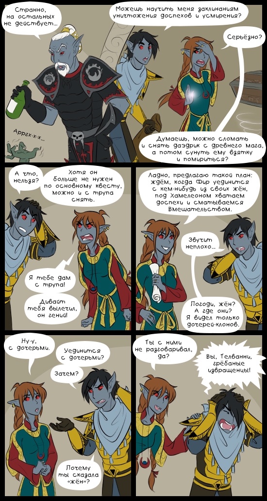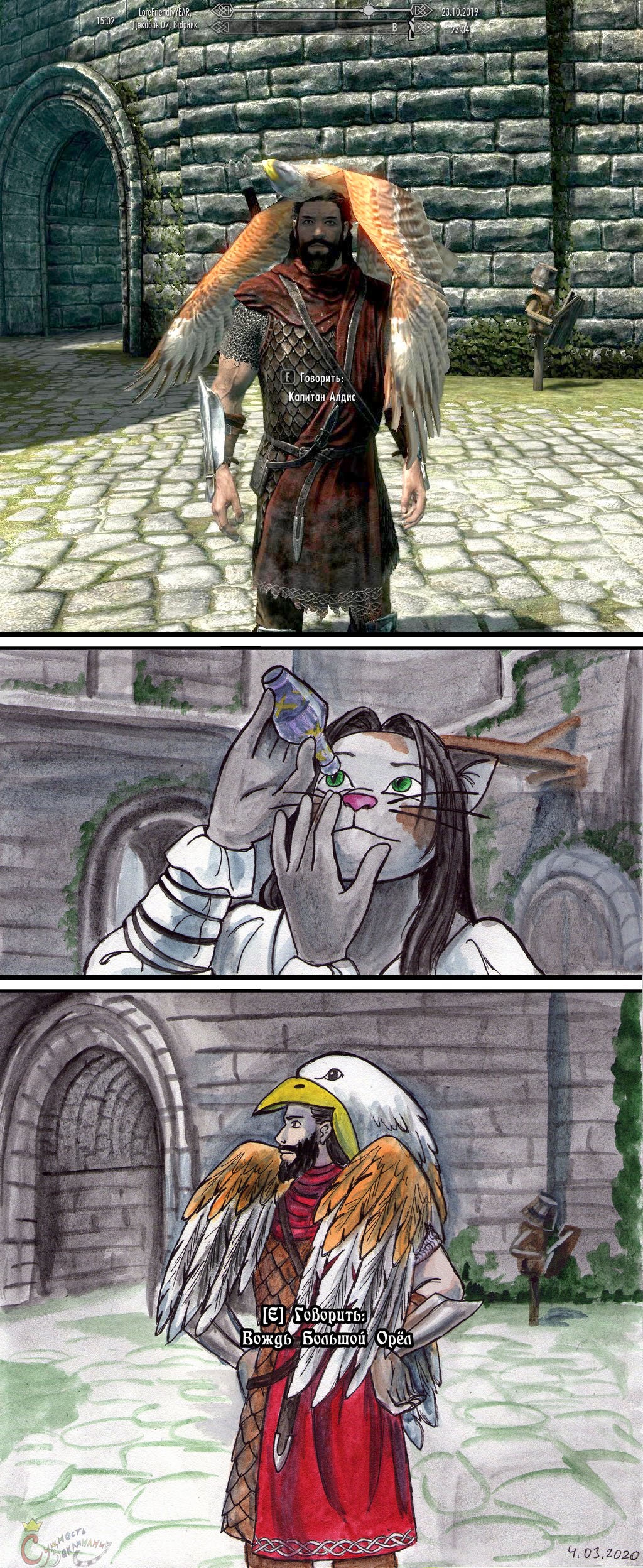 >>1980432 >>1980467 Это перерисовка одного оче старого комикса автора с ником nolore, во времена морошинда. Комикс был довольно известен, но вы его не застали ибо или ещё не родились тогда, или были очень маленькими. В нем было много рофлов про игру, но не было прона, хотя авторшу просили. Комикс она очень давно бросила. А это чья-то перерисовка, если присмотреться то видно что это не оригинал, оригинал чуть лучше нарисован.