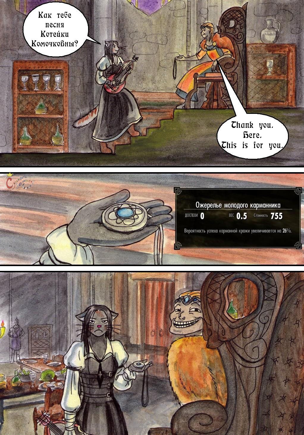 >>1980047 Хз, наверное Ярл Рифтена Лайла Рука Закона и она дарит амулет с зачарованием карманных краж, дарит каджиту, типа намекая и после исполнения песни, типа иди воруй лучше. Хз