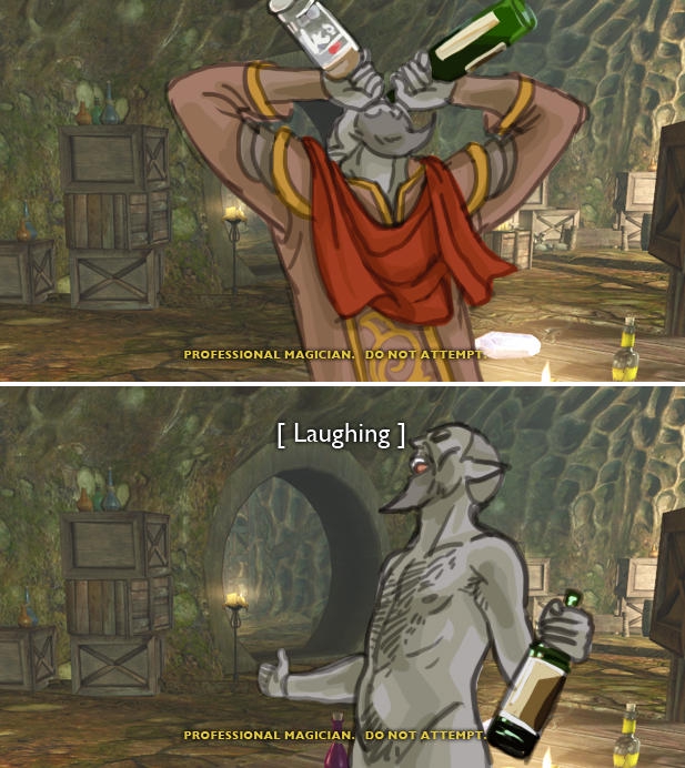 Оказалось, что секретная база Гильдии - это своего рода таверна "для своих". Благодаря Мьолл, героиня знает, с кем ей следует говорить, а когда челик-челибас-челюскинец начал маняврировать, ей пришлось надавить на него сведениями, которые снабдила её Сапфир. Чувак понял, что ситуация сложилась не в его пользу и отправляет этот отряд шлюх дальше в Крысиную нору якобы затем, что там, глубже, находится место, где планируют свои подлые дела работорговцы.