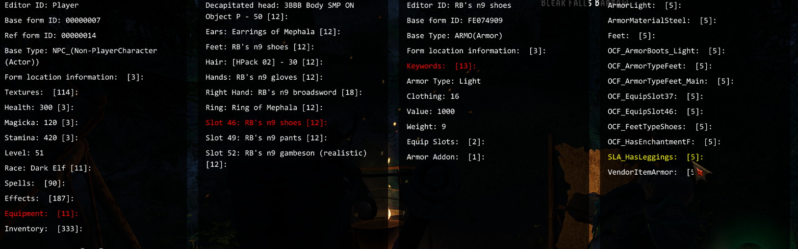 анон, а как проверить, присвоились ли baka keywords к броне? я написал к каждой интересующей меня броне _kid.ini файл, стоит keyword item distributor. Просто в самой модификации sexlab arousal baka edited ничего не видать