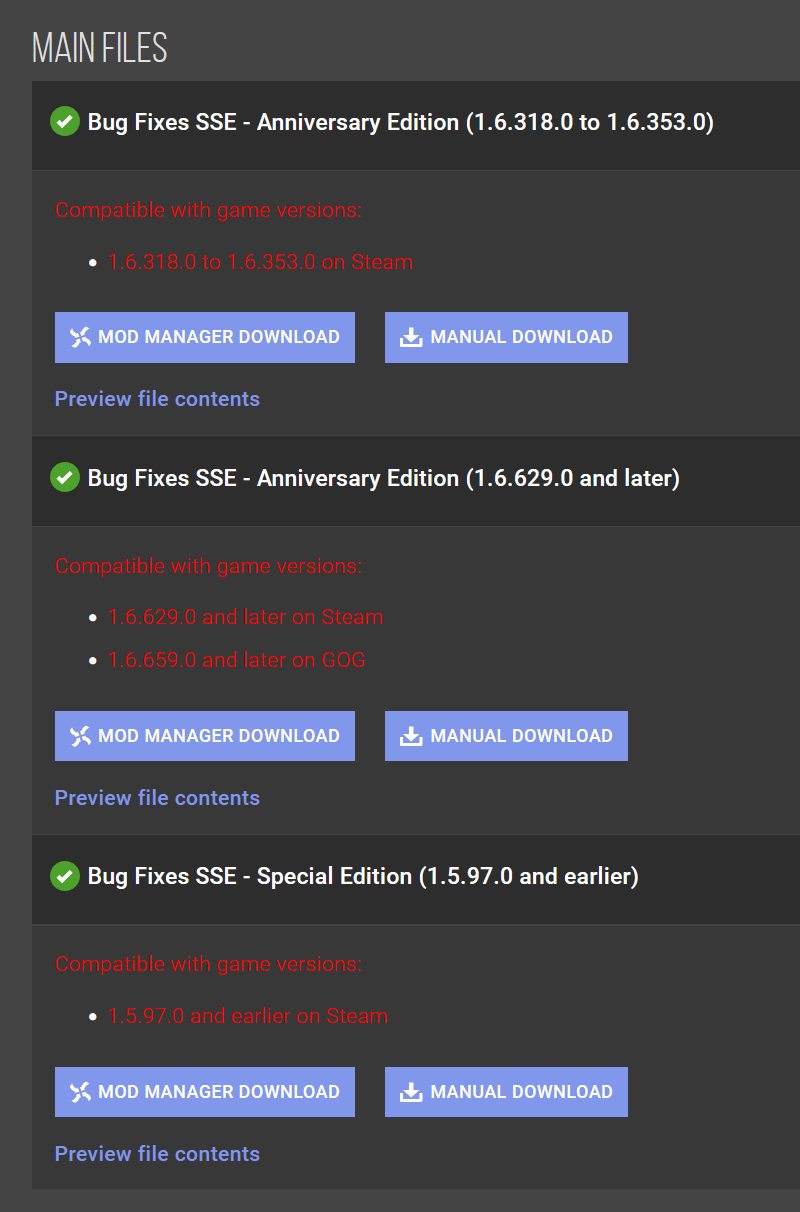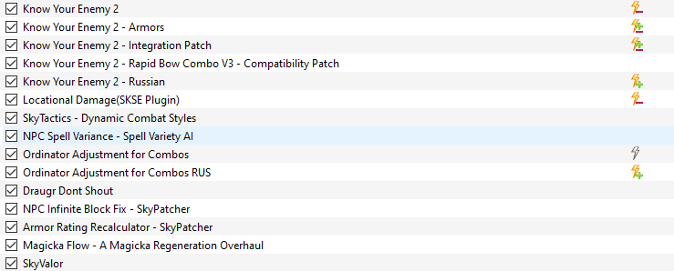 Особенности SSE: ➔ Самые популярные версии игры - 1.5.97, 1.6.640 и 1.6.1170 (Steam). ➔ Некоторые моды, связанные с SKSE, поддерживают не все версии игры. ➔ Skyrim Upscaler (есть в общей папке) и Lossless Scaling полезны как никогда. ➔ Война между проверенными старыми и перспективными новыми решениями нескончаема.