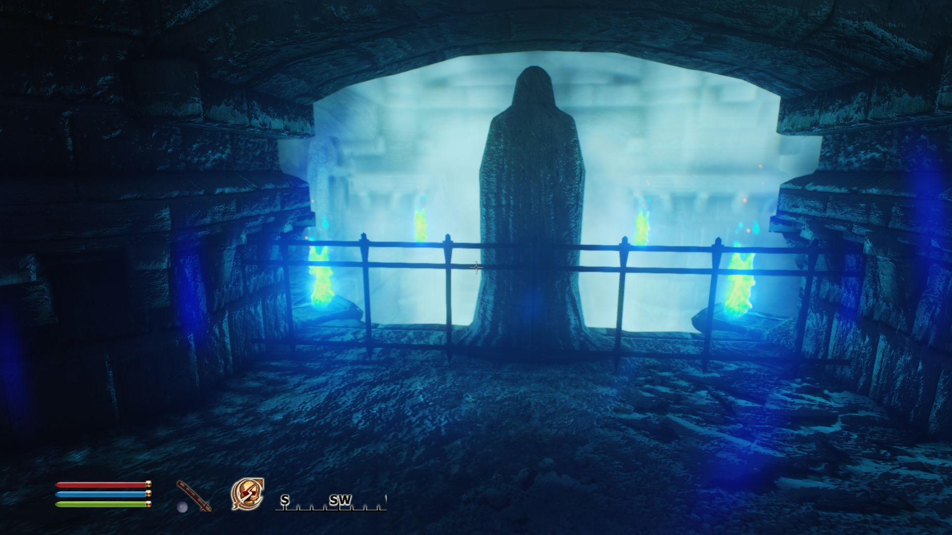 >>1988038 >В стартовом подземелье. Там где вот этот вот зал с ручьём фекальным, где два мостика - две агрессивных крысы. Заклинания "Лечения", зелья "Лечения", зелья "Щита". Когда здоровье кончается бежишь в сторону выхода. Там значит зал, слева лестница. Поднимаешься по ней. На площадку. Выход на права по мосту, а ты прыгаешь налево на стену. Над проходам к канальям такой выступ. Там можно зацепиться и в безопасности восстановить здоровье и магию. Да, я уже там прокачал 1 уровень. С поднятым щитом хватало на 4-5 ударов, а крысы отлетали от 5 вспышек ровно. В итоге полулачлось достаточно комфортно танковать.