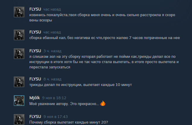 Чому в стиме такие парашные сборки, но в комментах их хвалят? Поставил 2 сборки от НАШИХ и поиграл неделю в каждую. Одна сборка просто вообще ничего не меняет хотя в описании дохуя чего. И автолевелинг сглаживает и награды интересные в конце, а не мотыга. Вторая сборка привносит много нового, но невероятно уебанская в плане населения мира. Тупо на одном петачке могут стоят по 10 тел. В алейдских руинах вообще 30 минотавров было.