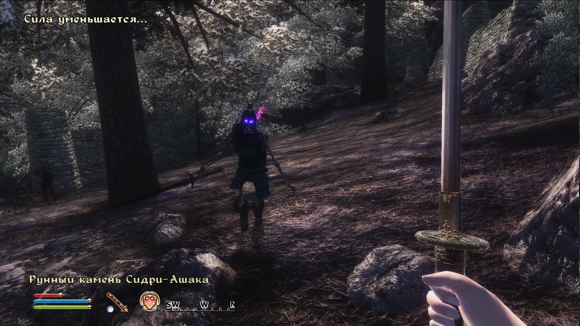 И "Стрельбу". В той сборке и при той сложности навык более 75, там надо 600 стрел вмочить в тролля!!! Это просто тяжело. Учитель где-то в лесу, в каком-то лагере, к нему надо подходить с "Эльфийским луком", и всё равно моя рожа ему не нравится и вообще ты кот. Не учит падла! :-(