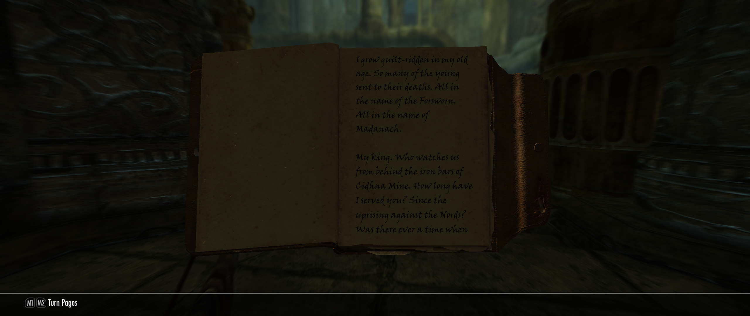 >>1985243 >ладно я все равно не понял Когда в инвентаре выбираешь книгу чтобы прочитать, она открывается посередине экрана, на страницах текст. Так вот эту книгу со страницами я и хочу заменить, те моды на обложки, что ты посоветовал меняют только обложки у объектов книжек в мире, предыдущий мод, что ты советовал немного расширяет логику работы этого интерфейса чтения, а я писал про мод, который бы непосредственно менял книжку-интерфейс со страницами.