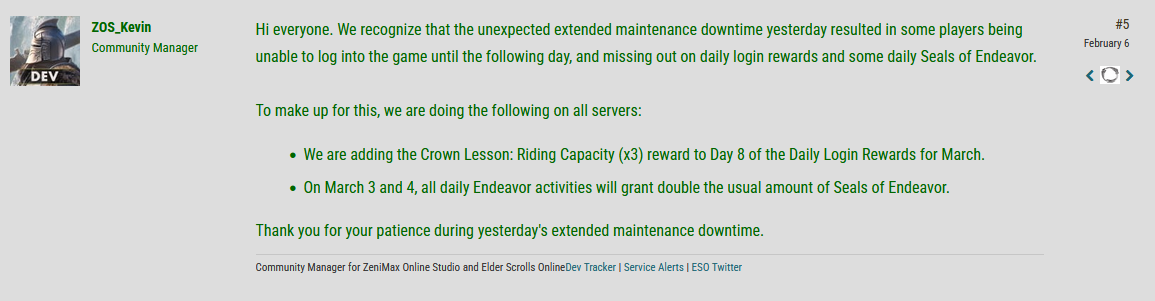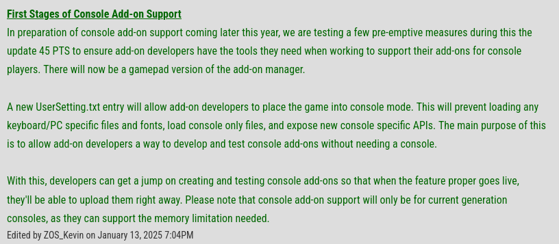 >>1992586 Ну зайди в любую новость на их сайте, вот например: https://www.elderscrollsonline.com/en-us/news/post/67577 Там в конце указано что «The Fallen Banners dungeon pack arrives for ESO Plus members alongside the Update 45», а доступны для покупки станут «shortly after console launch». Как минимум на релизе они только для подписчиков. Да и чего собственно ЗОСы должны испугаться? Воплей нищеты? ))