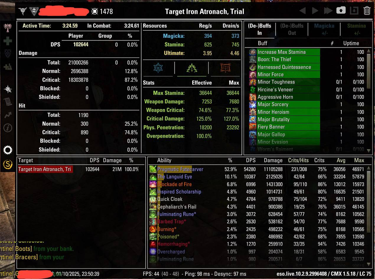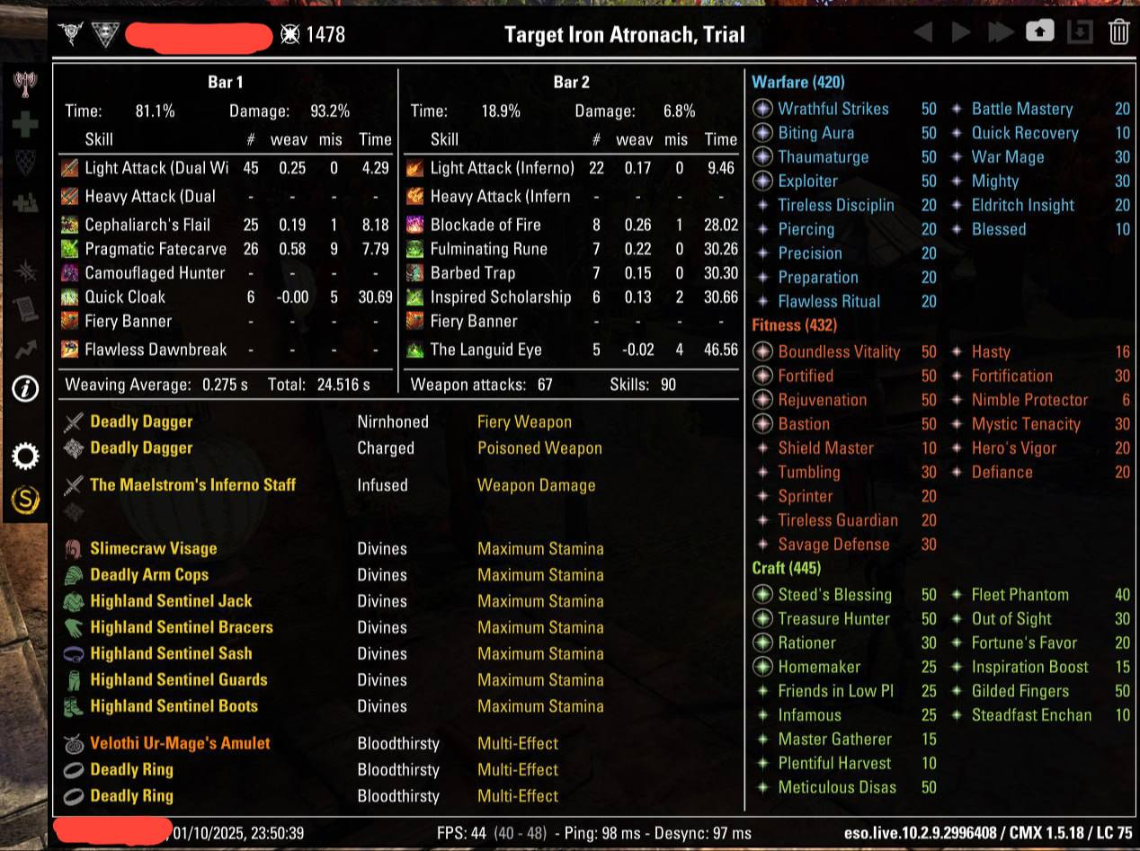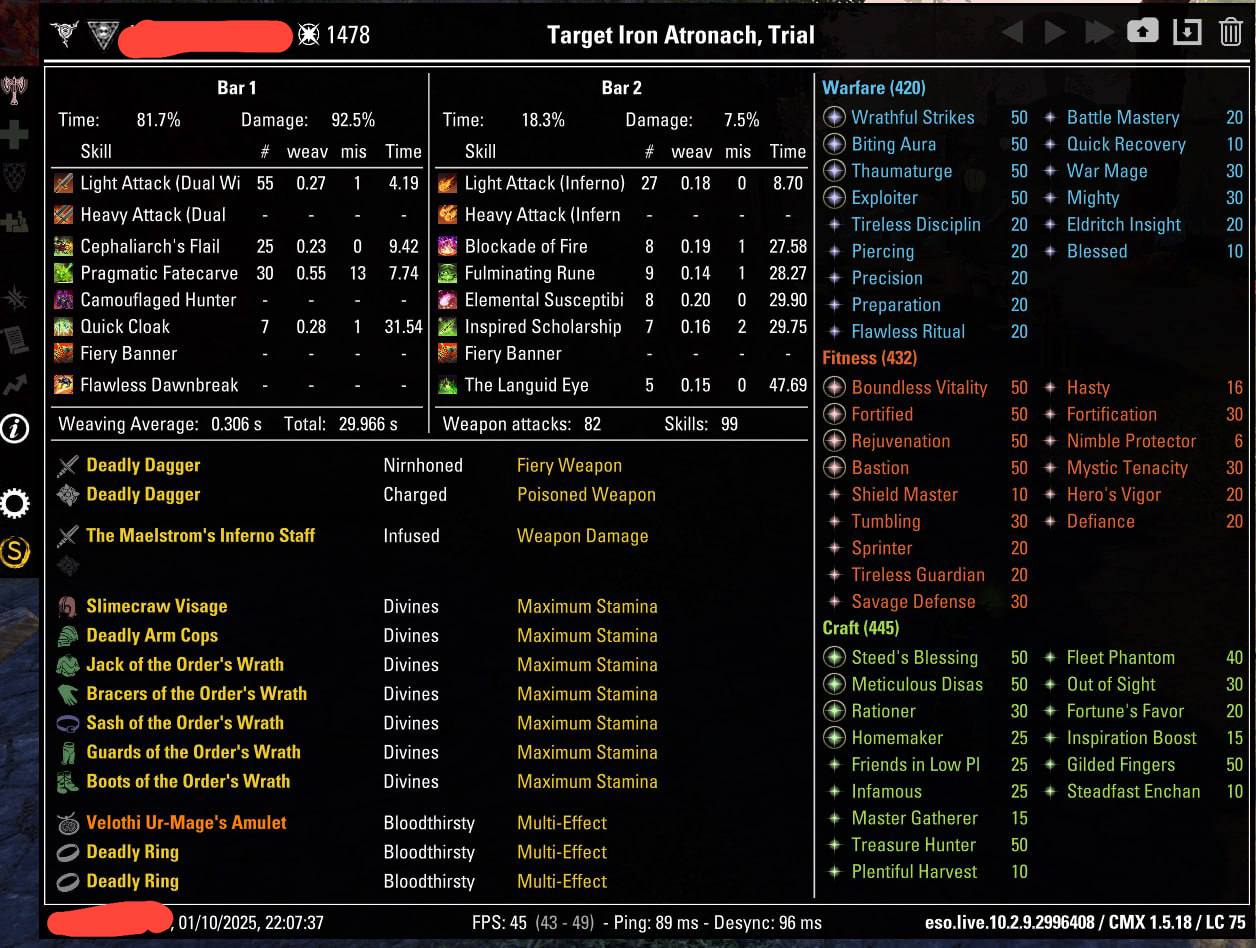 Господа колотители кукол, прошу вашего совета. Вернулся в игру после окологодичного перерыва и понял что совершенно не в состоянии хоть как-то дамажить. На раканисте выдать больше 100к вышло только надев хайленд и сожрав стаминной еды (пик 1,2) В обычном снаряжении получается в районе 90-93 (3,4) Тут только стискивать зубы и оптимизировать ебучий вивинг или есть какие-то очевидные вещи, которые упустил?