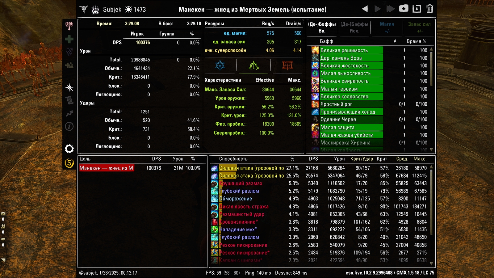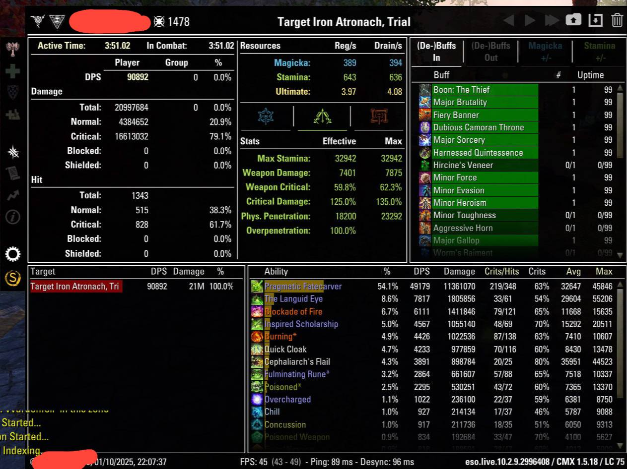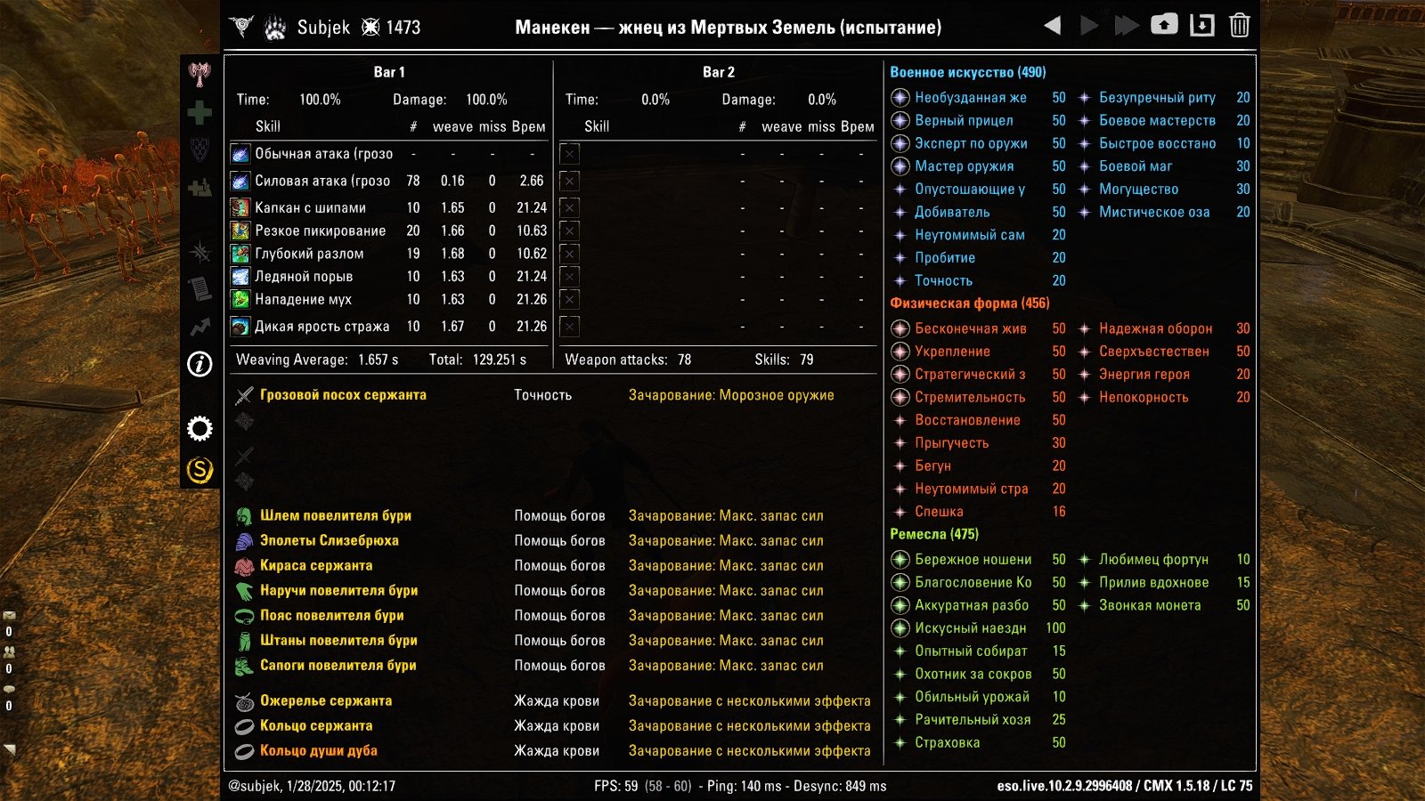 >>1988476 > только надев хайленд Грустно. > и сожрав стаминной еды А что, по-твоему, там должно быть? > или есть какие-то очевидные вещи, которые упустил? Ульта сдаётся под ОБ (Off Balance, трекай аддонами, например, PenTest'ом), в идеале заряженный луч тоже. Аптайм дорожки (как следствие - и глифа на спд / впд) в пизде. Ловушка не нужна (бафф у тебя уже есть, а урон занерфлен), вместо неё вроде красный дрейн должен быть. А если играешь с дрейном, то вместо огненного глифа надо абсорб стамины. > как в него интегрировать барсвап? ЛА - сразу скилл (в идеале без каст тайма, чтобы свапом случайно не прервать каст) - свап, потом ЛА - сразу скилл. > какие из ла надо прожимать? Комбинация "ЛА - свап - ЛА" - лажа, т.к. у ЛА свой гкд в 0,7 секунды, а твоя задача вместить в гкд скиллов (1 секунду) и ЛА, и скилл, и при необходимости свап. Можно делать ЛА после скилла с каст таймом, чтобы с бэка просто прожать скилл. > заметил что барсвап отменяет анимации некоторых скиллов (дорожка) Ну да, только отмена анимации и отмена каста - разные вещи. Если скилл мгновенный, то тебе совершенно похуй, сколько длится его анимация и насколько сильно ты отменил её свапом / башем. > так что казалось бы ла1 не нужна Потому что либо ла1, либо ла2. Как уже сказал, ты бьёшь парами ЛА-скилл, а сдача двух ЛА подряд - проёб 0,7 секунды (т.е. по сути один гкд ты не кастишь скиллы, что ошибка). > в случае стампеды он иногда просто не прожимается Потому что тебя лочит анимация передвижения. У хардкорных парсеров автобег в препятствие, в реальном контенте ты жмёшь ЛА, стампиду и клавишу движения для выхода из лока анимации. >>1988478 Вангую, ты начал ультить + бимить под ОБ.