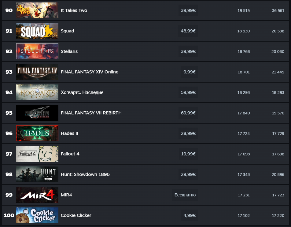 >>1992429 Да мне похуй, ко мне говно не липнет уже лол. И через пару лет её не будет в стиме. Что это за онлайн «игра», которая в субботу вечером уже не может попасть даже в последнюю десятку. МС неизбежно прикроет эту лавочку.