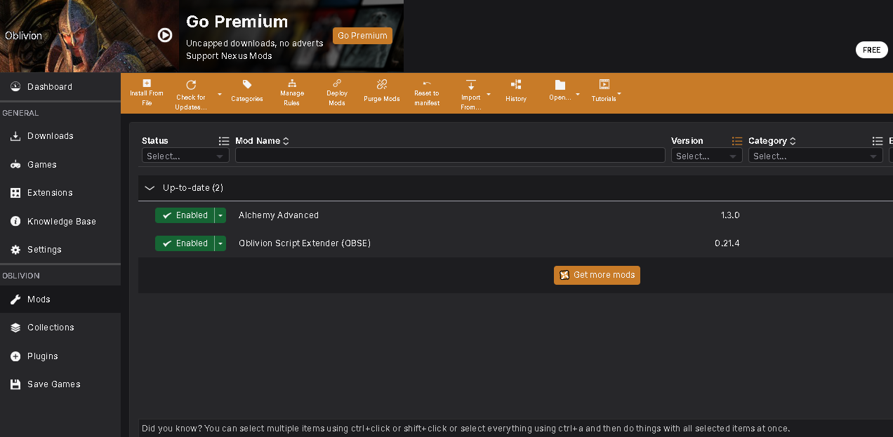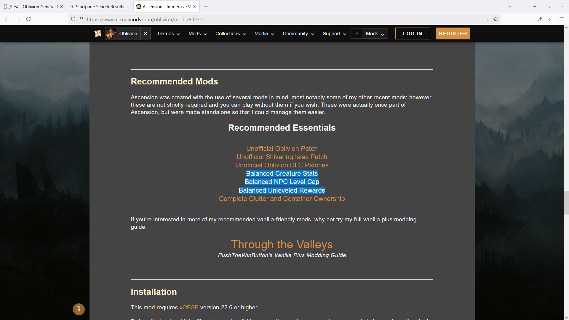 >>1989225 Вроде бы и поставил, но меню со ступкой меню алхимии не изменилось. Скрипт экстендер при попытке запустить его из папки с игрой жаловался на отсутствие какой-то DLL. АА тоже попытался в Data распаковать (5-6 папок там было) - лаунчер его тоже не увидел. Пришлось ставить Vortex и пытаться через него. А дальше скрин рилейтед и тем не менее - в самом обливионе меню алхимии старое (смотрю в месте, где в тюрьме поднимается ступка).