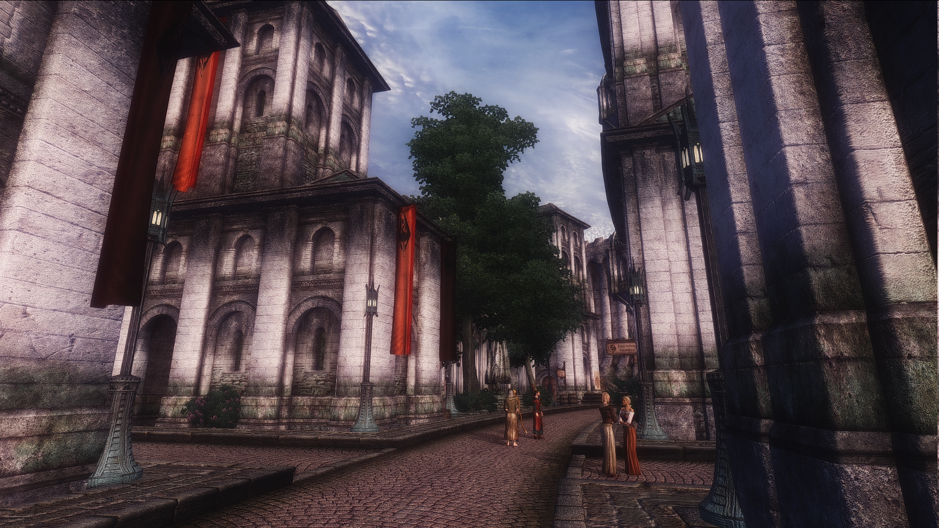Кватч оказался тем самым Римом, только из чёрного камня, на котором отлично смотрятся белые флаги. Вторая столица Сиродила, как никак. Только несколько уродливых бретонских домов портят вид, а по сюжету Мотьеры как раз режут имперскую верхушку Кватча для перехвата власти.