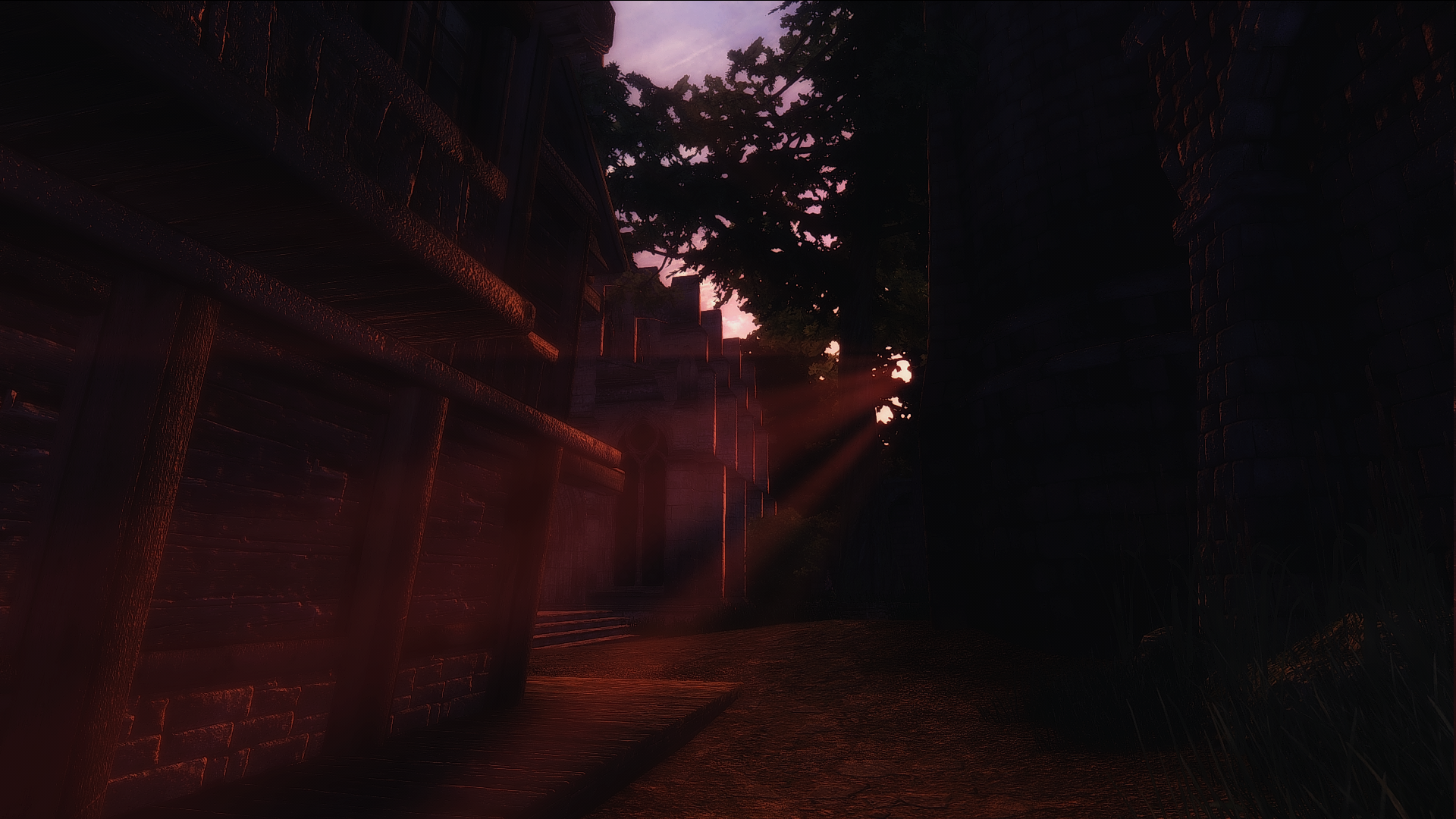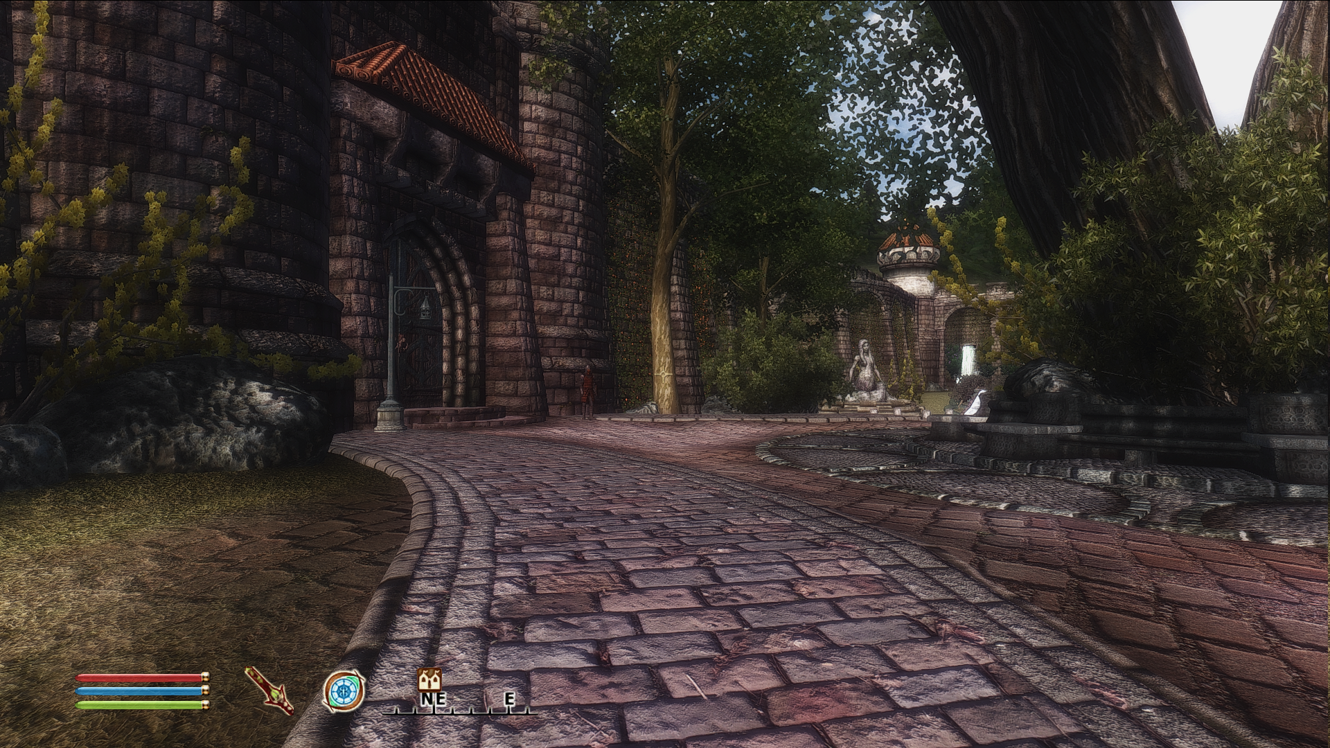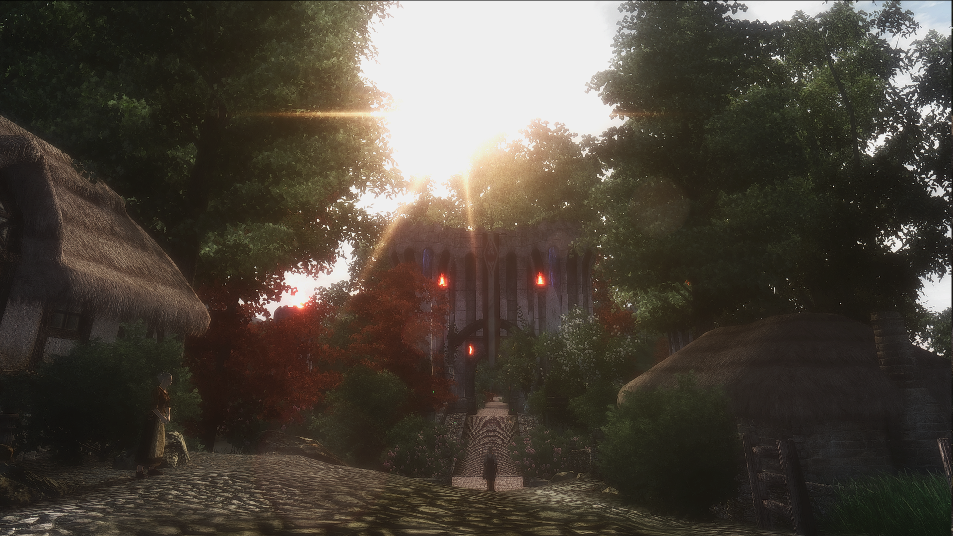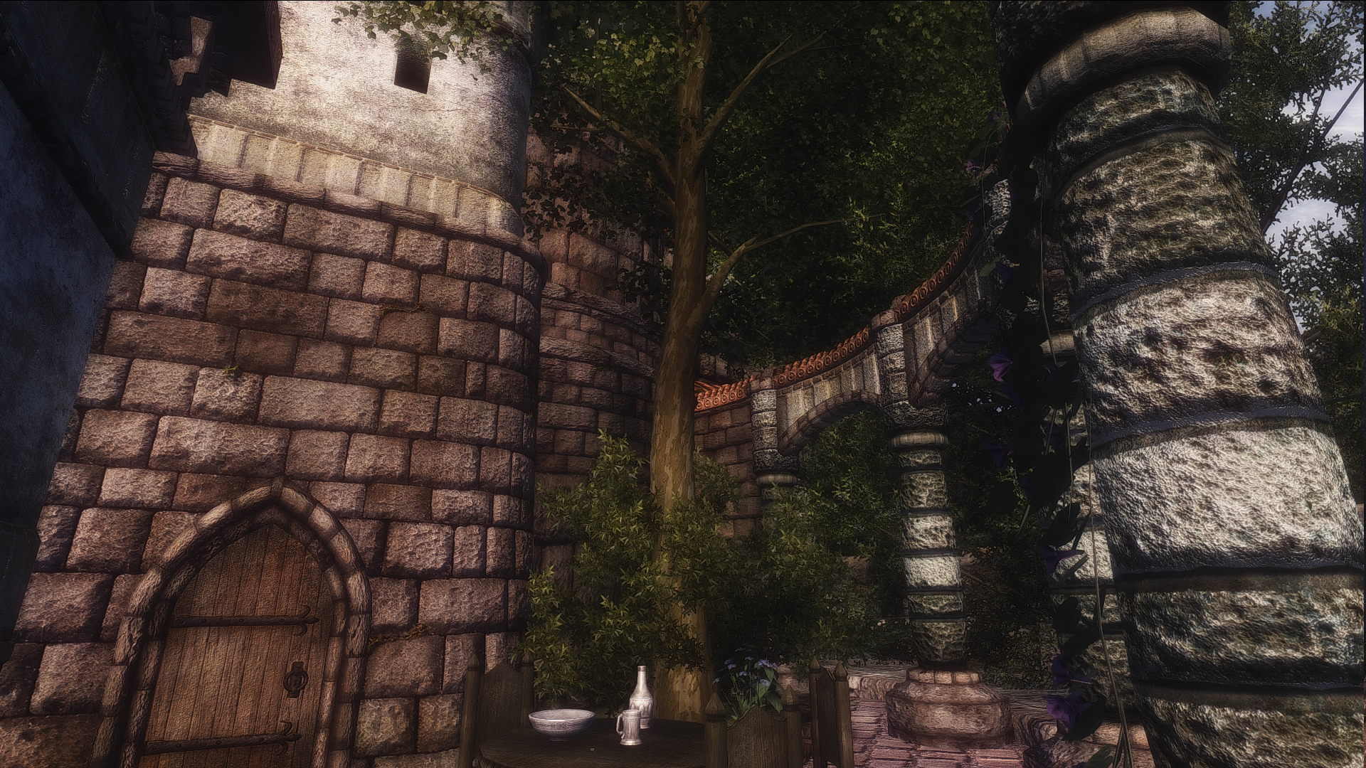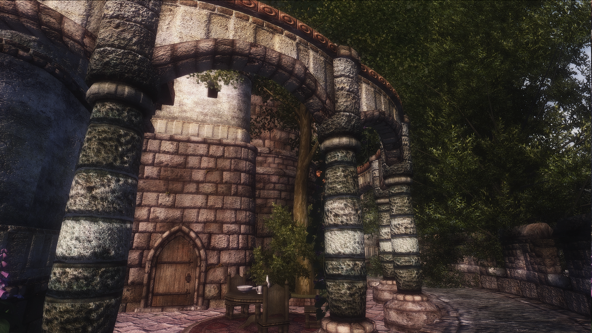 Чейдинхолл имеет удивительную каменную кладку, которая еще и отличается на каждом этаже. Городу явно не хватает ферм с овечками, фермерами с тогами и деревянными посохами, чтобы жили вот в таких каменных домиках, как никак смесь данмерской и нордской культуры, как в коллегии винтерхолда. Крыши по цвету напоминают виноград, а решётки на окнах тоже извиваются будто виноградная лоза. В целом домики кажется являются отсылкой на двемерские города в морровинде, потому что в путеводителе упоминалось, что Чейдинхолл построен в данмерском стиле, но каких-то других параллелей я не вижу.