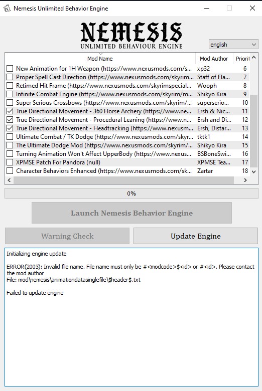 >>1990887 Хз, у меня с пандорой фурнитура ЗАЗа нормальное работает. >>1990910 Ну если все и так устраивает - то смысла менять нет. Просто лучшая итерация немезиса. Если не нужны моды требующие мемезис, то можно и просто фнис использовать, он как часы работает до сих пор. >>1990911 Скинь лог который генерирует NetScriptFramework на пастбин или схожий сайт. Если, конечно, у тебя не ctd без ошибок.