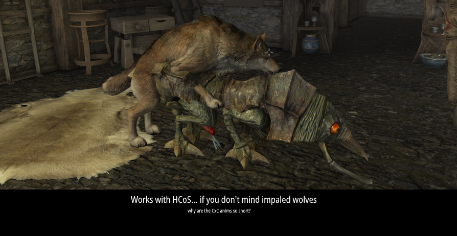 Creature Framework не работает. Я уже начинал игру сначала, с новым персом. В самый первый раз этот фреймворк загружается быстро и корректно, но когда я во второй раз захожу в него через MCM, то он начинает своё ебучее initialization и никогда его не заканчивает. И из-за этого я не могу зарегать новые анимации чтоб можно было взаимодействовать с нелюдьми. В SexLab только для гуманоидов с "чёрной душой".