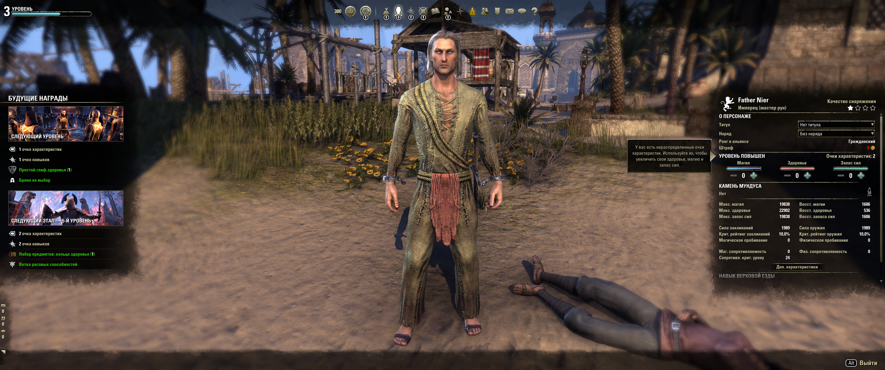 Кстати поиграл. Сейчас достиг 17 LVL чародеем - высшим эльфом, развитие через ману. И 14 LVL некромантом через стамину, за тёмного эльфа. Ну в принципе ничего, играть можно, главное шмот на первых парах нормальный выбить.