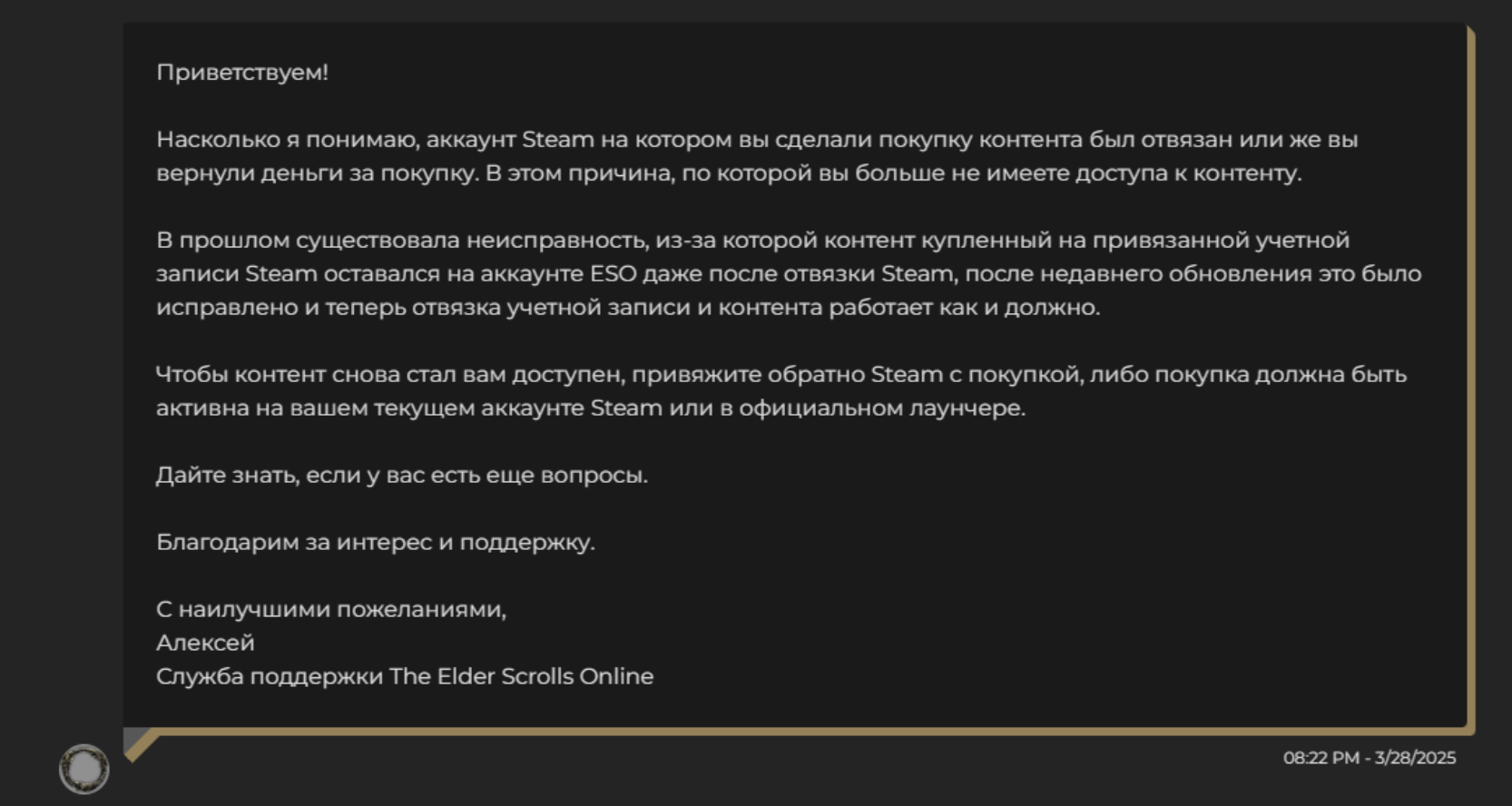 >>1996933 Тбеггал в промежутке до единого Тамриэля и конца Эльсвейра. потом дропнул есо Никаких предупреждений не получал. Вот и думайте.