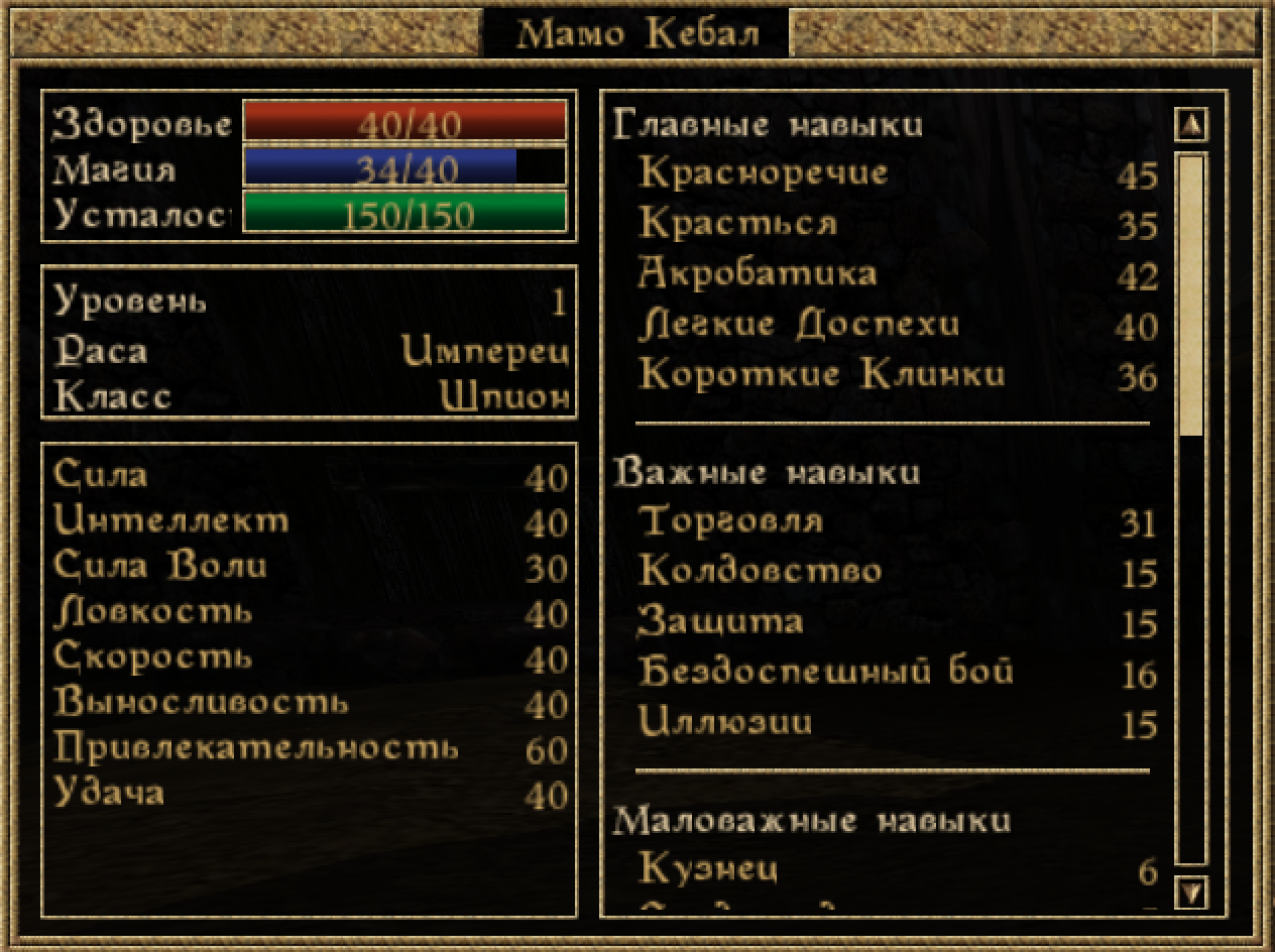Таким образом, с учетом расовых бонусов и бонуса от выбранной специализации мы можем развить некоторые свои основные навыки до 120. Вторичные до 50-70. А вот третичные развивать не можем вовсе. Они всю игру будут с теми значениями которые получили на старте: от 5 до 20.