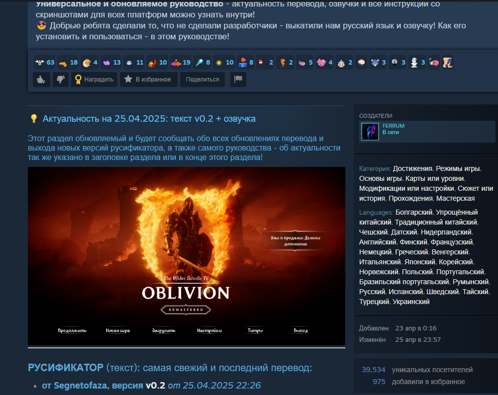 Или вот мод на Сиродиил. В 2017 анонсировали остров Стирк и только сейчас выпустили Западную Коловию. Короче, что там что там у васянов одинаково по скорости.