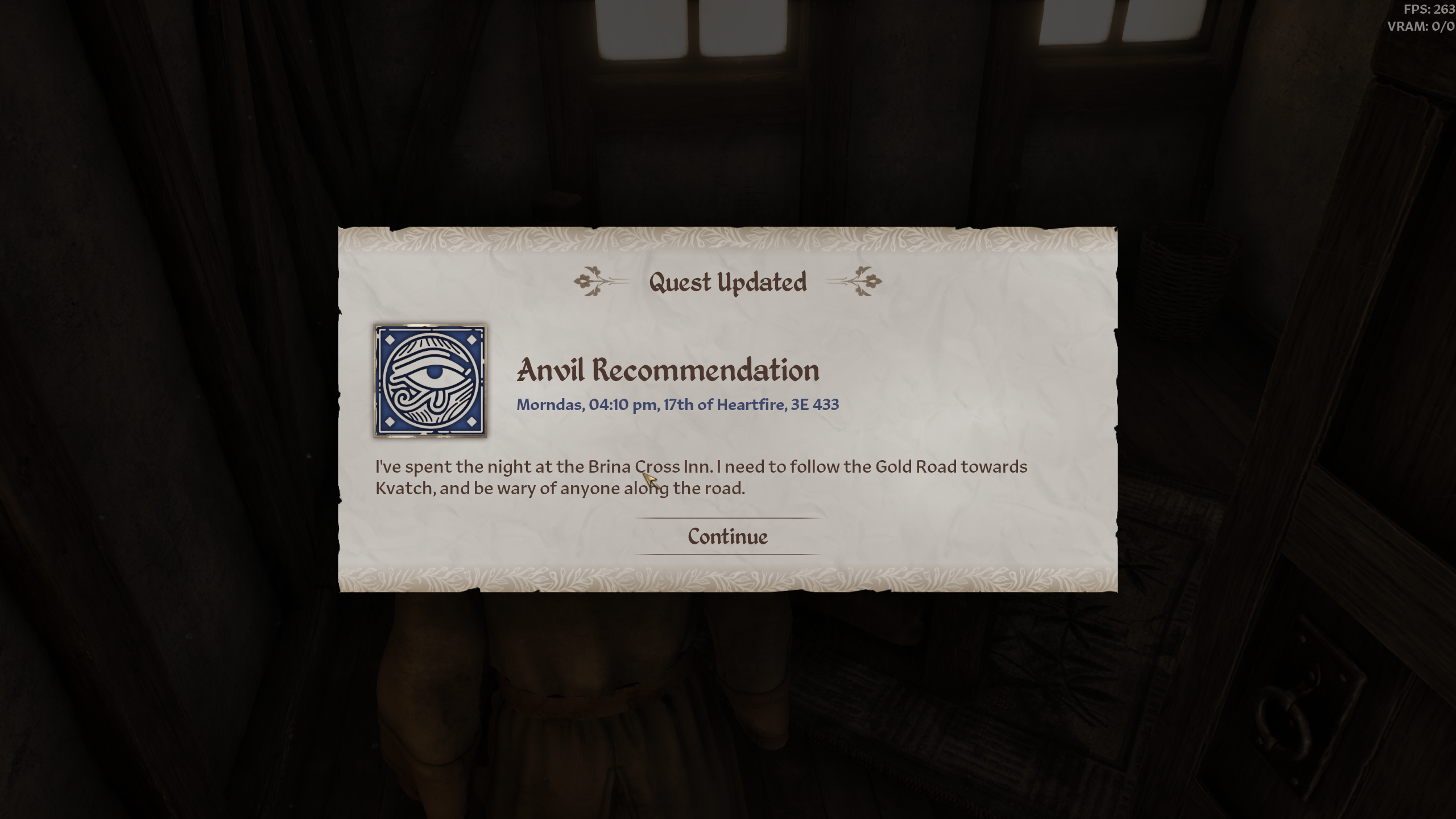 Ну вот, наконец-то проводил Джофри и Мартина, Джофри так раздобрился что пригласли в клинки, но я вежливо отказался, может быть потом вступлю. Послали к Баурусу, начинать арку поиска амулета, но я пока не буду её делать, хочу открыть гильдию магов, посетить шпиль (башня, дом в горах джерол), да просто поаутировать пока.