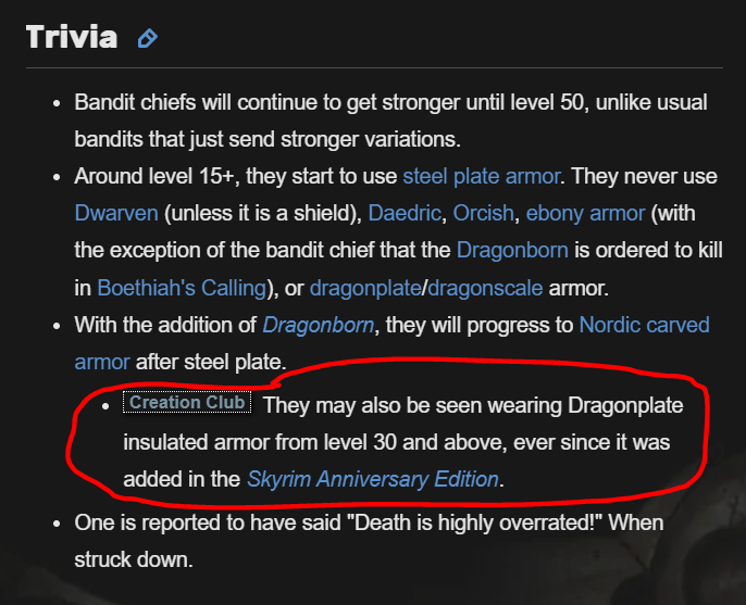 >>2003181 Даэдрики - действительно кал. Но частично есть обоснуй: с повышением уровней повышается разнообразие видов противников. Сначала ты видишь просто бандитов, а потом к ним добавляются бандиты-военачальники и т.д. И вот чем выше тир бандита - тем лучше его снаряга.