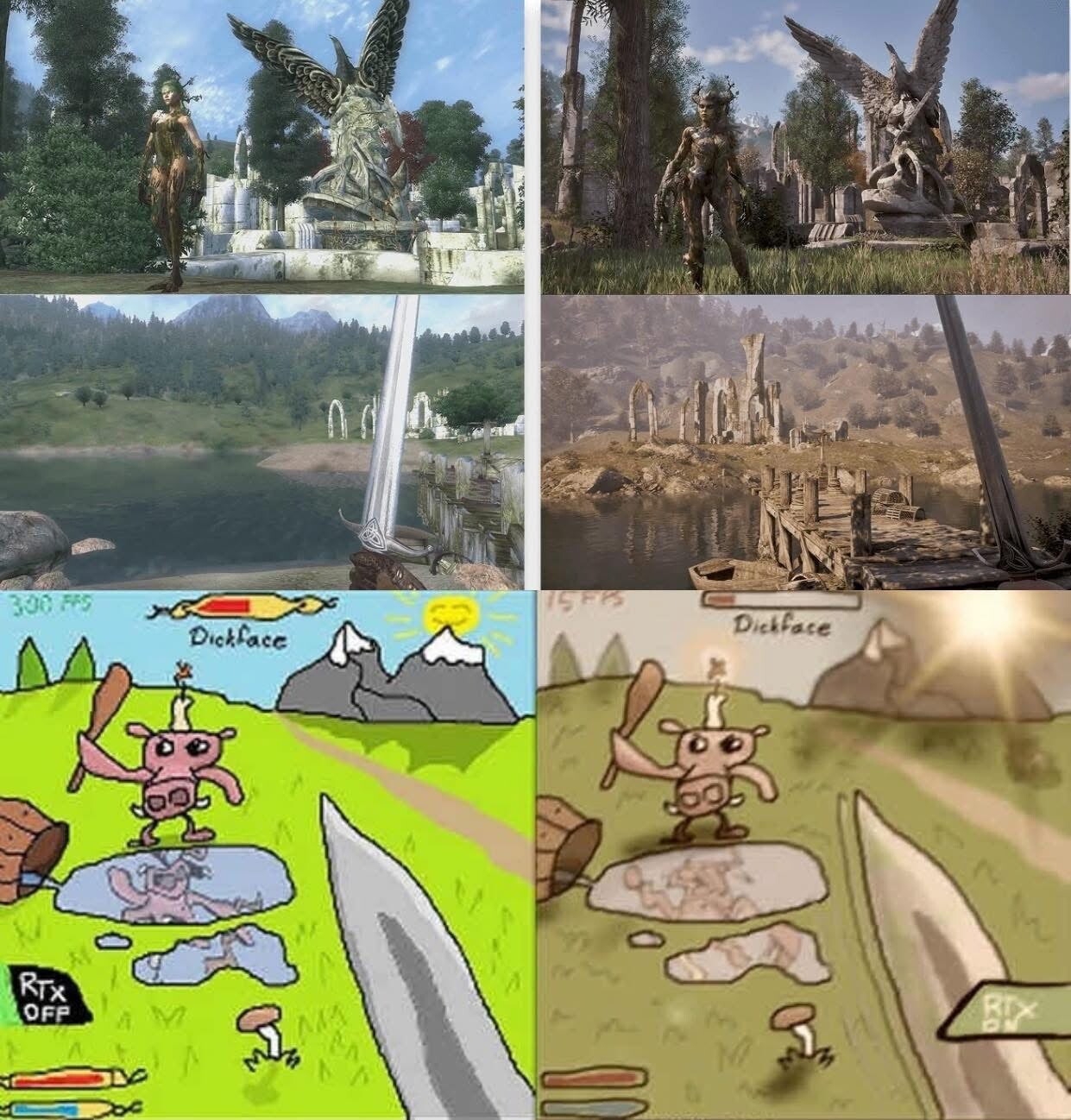 >>2003288 Зависит от многого. Я тут до выхода ремастера единственный в тредисе с распердоленной графикой был весь год https://next.nexusmods.com/profile/Saudarkrokur/media и для меня он оказался высерком во многих аспектах, в который и нихера нельзя завезти и без того испорченного ремастером контента, без того же better forts/dungeons - обла уже не обла, например. Поиграть в неё на один/два разок получится, но пожить в ней не получится. Облоутки теперь просто мониторят нексус, чтоб кто-то спустил ясность адекватности UE моддинга в новом ремейке и нынешней неадекватности в старом, потому что из нее сейчас наблюдают вакханалию и если уход авторов публичный, то удаляют из истории модов за прекращение поддержки.