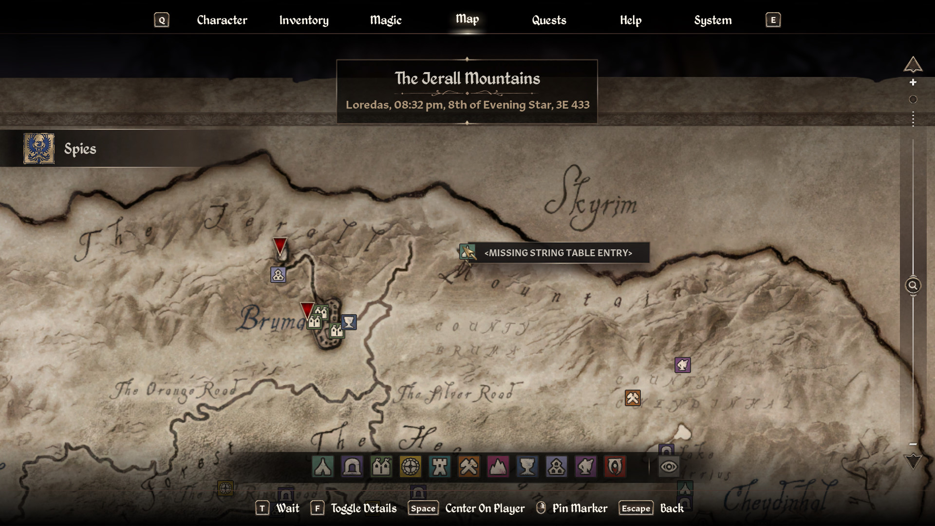 >The map marker edit for "Timberscar Cave" has been removed because it shows up on the map as a missing string table entry. This will revert it back to "Timberscar Hollow" even though this is not the correct name for the dungeon. >Removed the fix for Nocturnal's Shrine map marker due to string table issues. (Bug #35227) >Readded the fix for the missing map marker at Vanua, this time with a proper string localization tag. Thanks to MerseyRockoff for finding that. >Readded the fix for the missing map marker at Dunbarrow Cave, this time with a proper string localization tag.