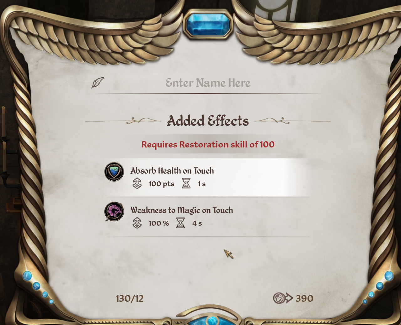 Наконец-то открыл университет магии. Сразу же создал себе несколько заклинаний. Надо еще прокачать иллюзию и мистицизм, и в их школах тоже что нибудь себе сделаю. Жаль только всего 8 быстрых слотов, и то 1 слот я забрал под зелье магии. Поэтому всего 7 свободно под разные заклинания, и у меня остался 1 свободный слот под будущее заклинание.