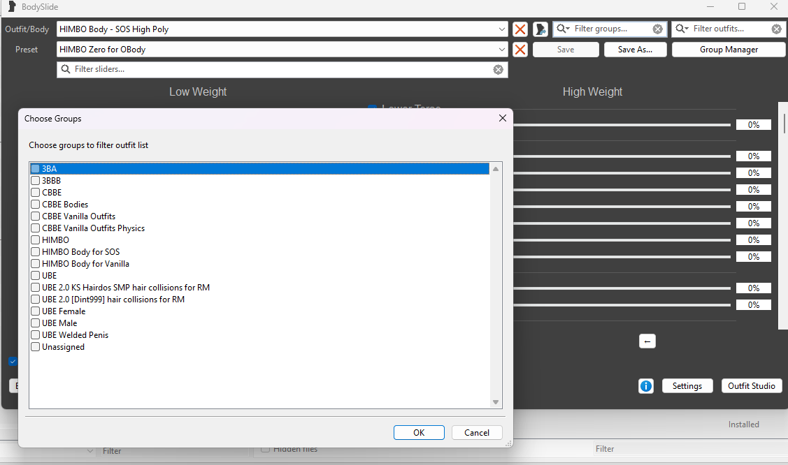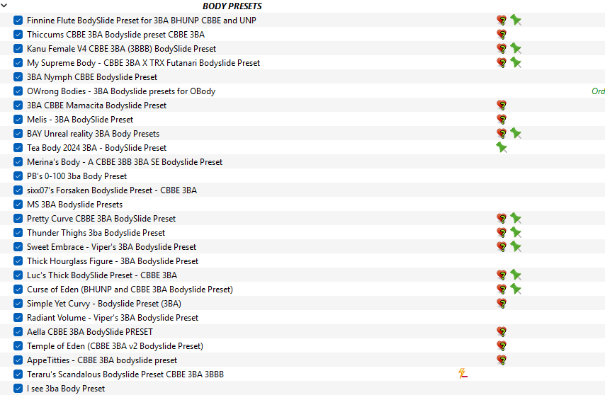 >>2016461 > Появляются в внутреигровом меню пресеты ободи для мужиков, но они не влияют никак на персонажей Уже хорошо. Проверь в настройках Бодислайда отмечена ли у тебя галочка морфов (слева внизу). Если её не будет, то тело как раз не меняет шейп.