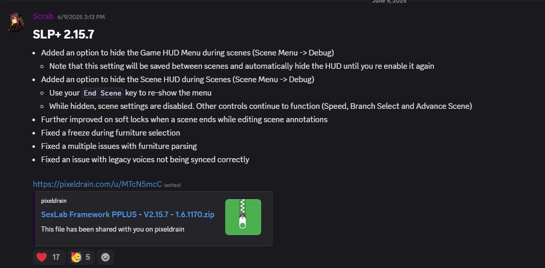 >>2008896 (OP) В дискорде скраба кстати уже допилен практически Sexlab P+, было последнее крупное обновление, дальше все только фиксы мелкие будут. Подробнее в дискорде. https://pixeldrain.com/u/ecELuVhV