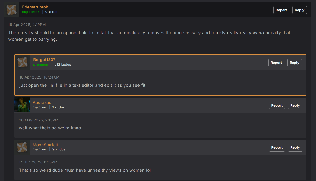 2. Васянское видение в плане дизайна - отдельный пиздец. Бронеульфрики, лытари боевые маги стражники, эбонитовые хускарлы и вампиры (они блядь ориентированы на скрытность и лёгкую броню сука блядь), Васянские переделки бандитских локаций, кринж-описания предметов на полторы книги вместо тупо нормального "+40 к урону тем-то".