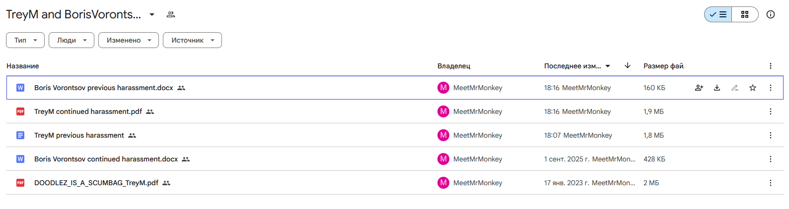 >>2023448 Если есть в дс Бориса, то можешь там Трейма дёрнуть, он скринов накидает. Я не оправдываю шизу и ебанутый нрав Бориса, но и Дудлз не святой вообще ни разу.